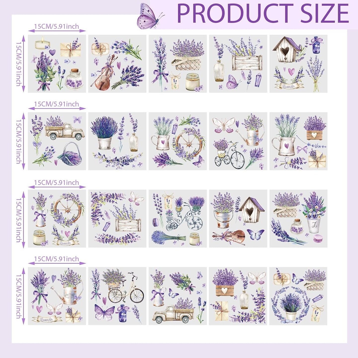 20 Sheets Lavender Rub on Transfers for Crafts (purple) 5.91 inches x 5.91 inches
