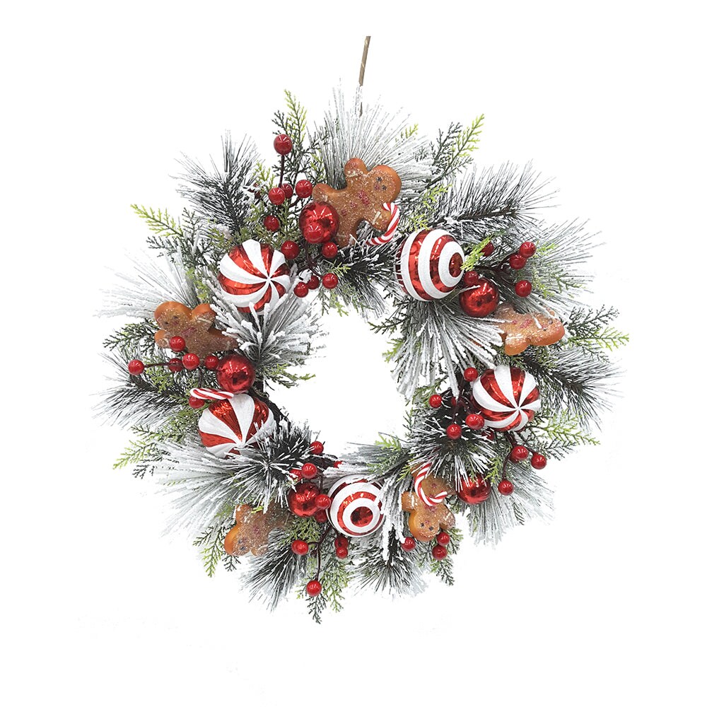 20" Un-Lit Gingerbread Flocked Green Christmas Wreath