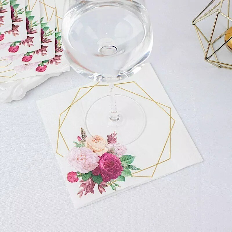 20 White 13x13 in Dinner Cocktail Paper NAPKINS Floral Hexagon Design Events