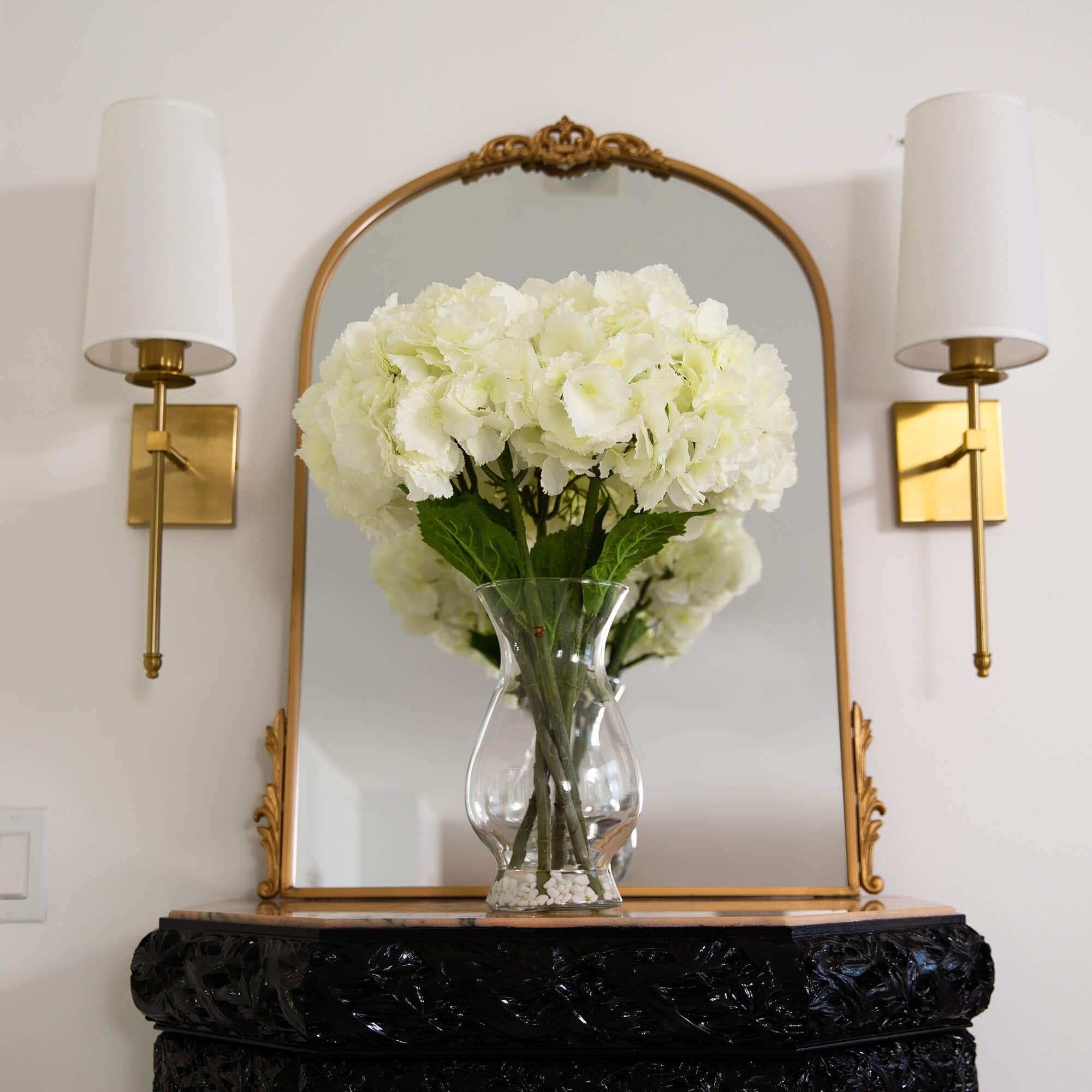 20" White Artificial Hydrangea Arrangement in Glass Vase