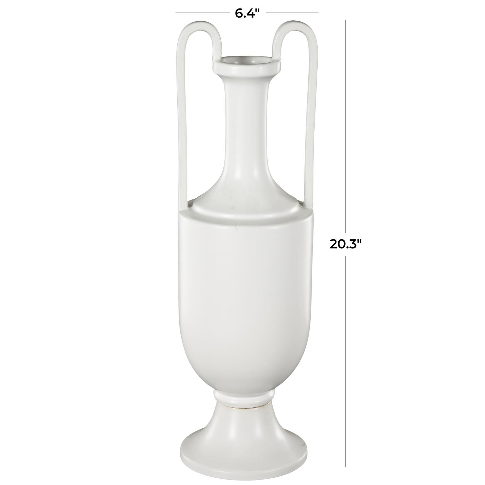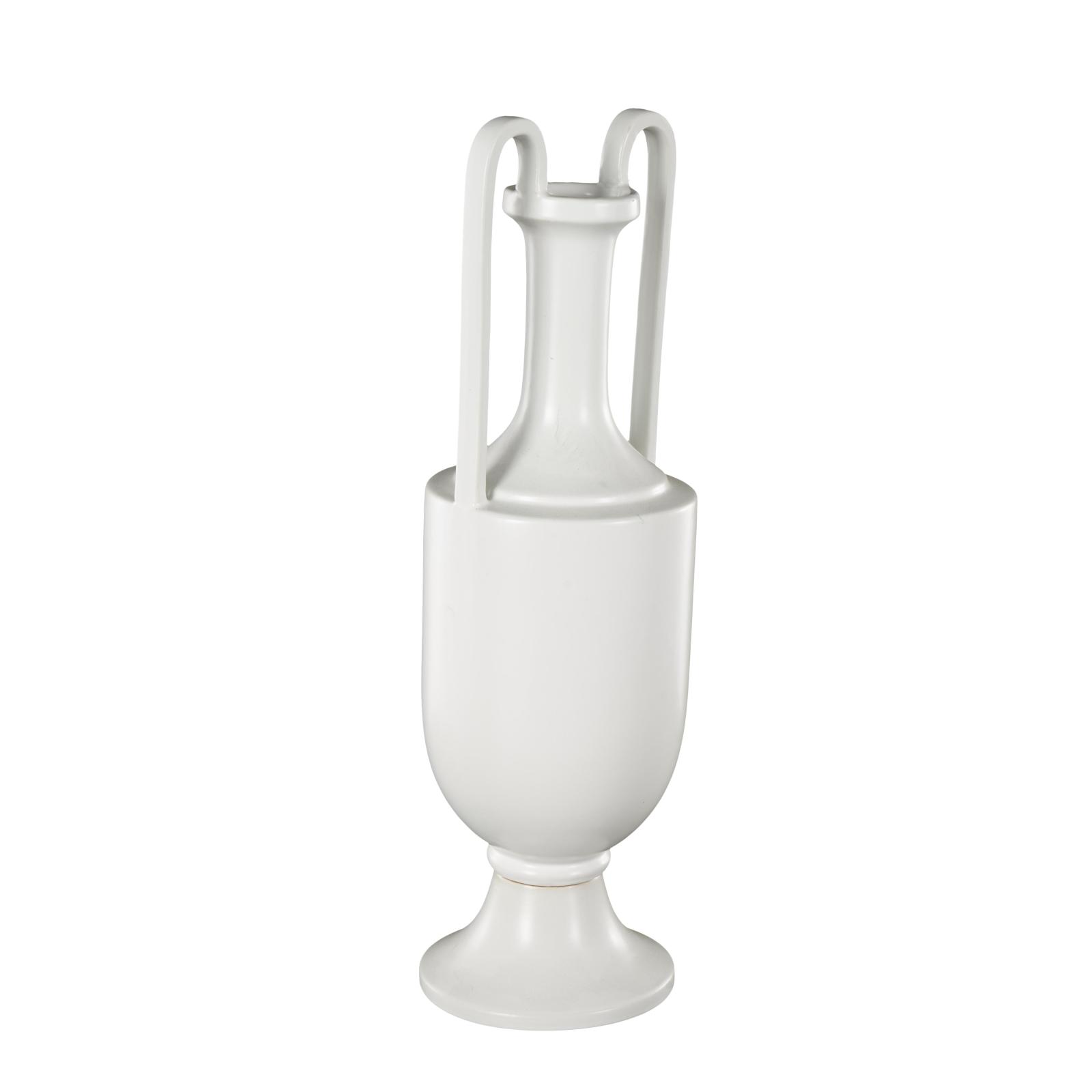 20" White Fluted Urn Shaped Ceramic Vase with Arch Handles
