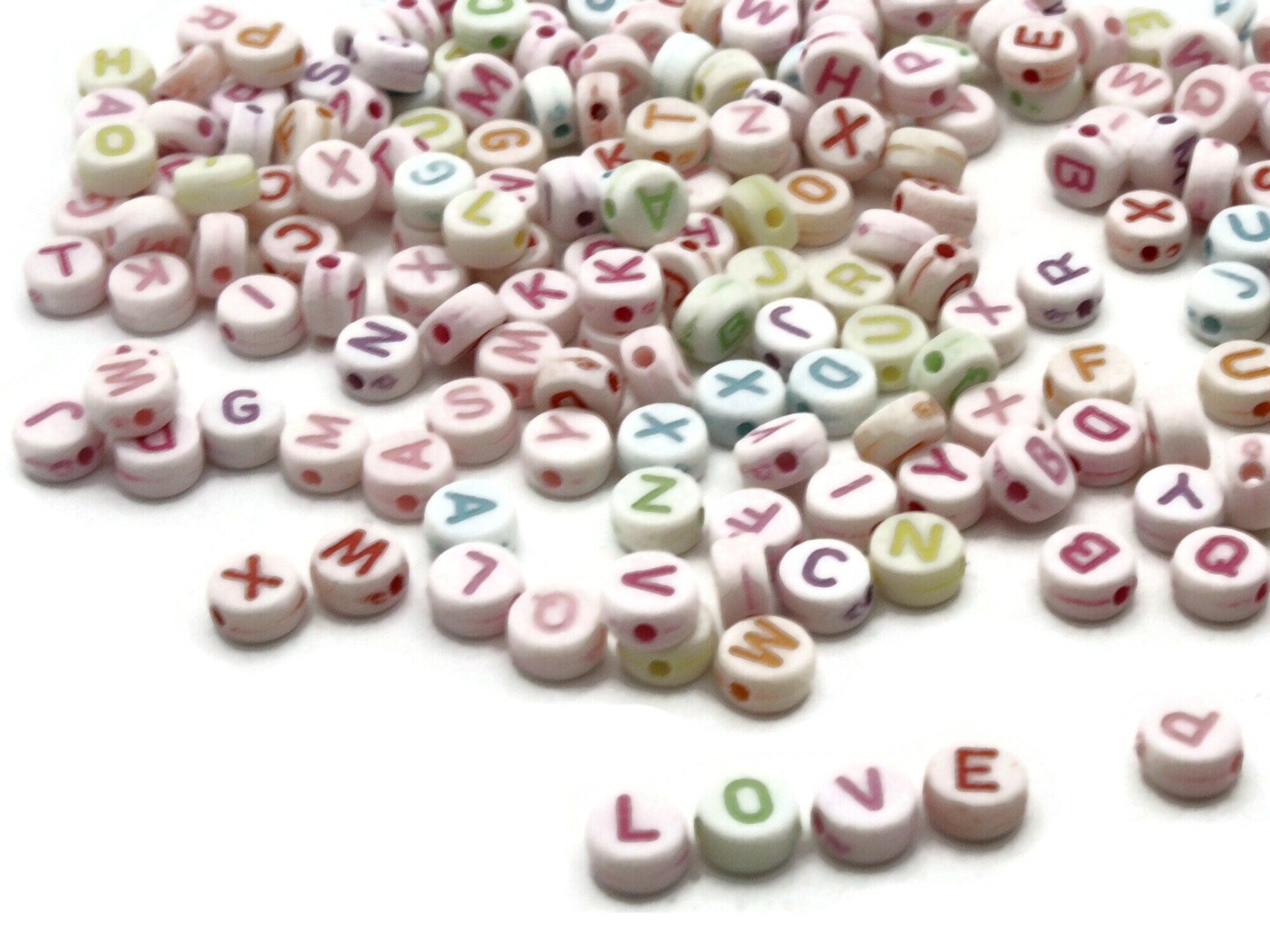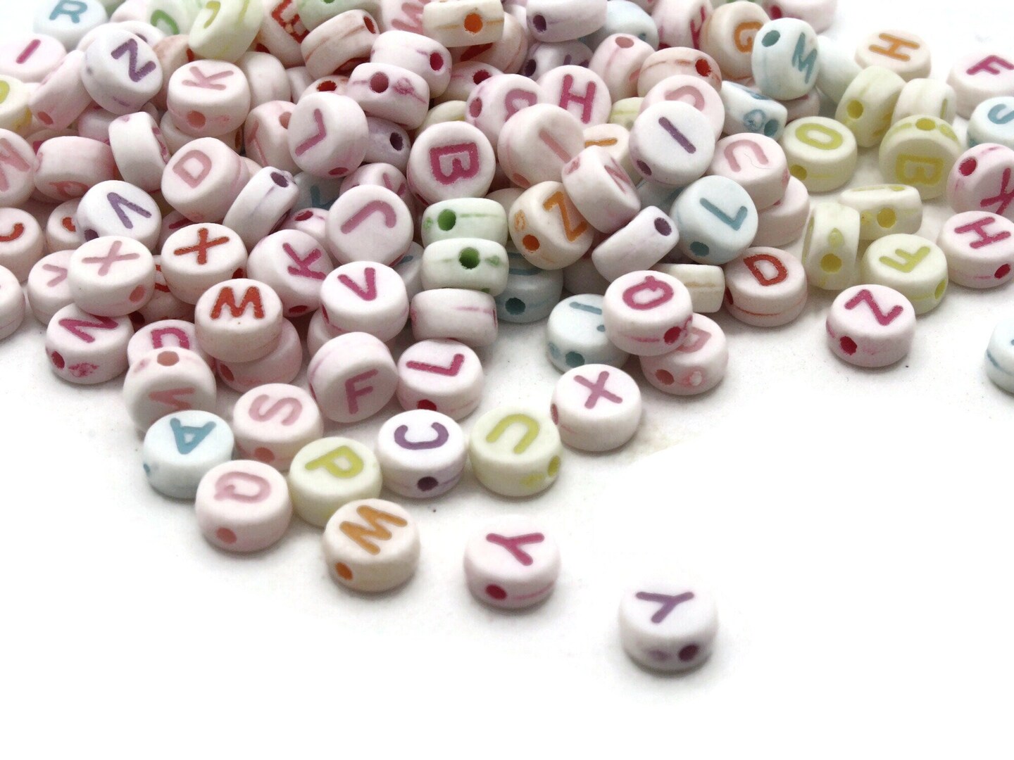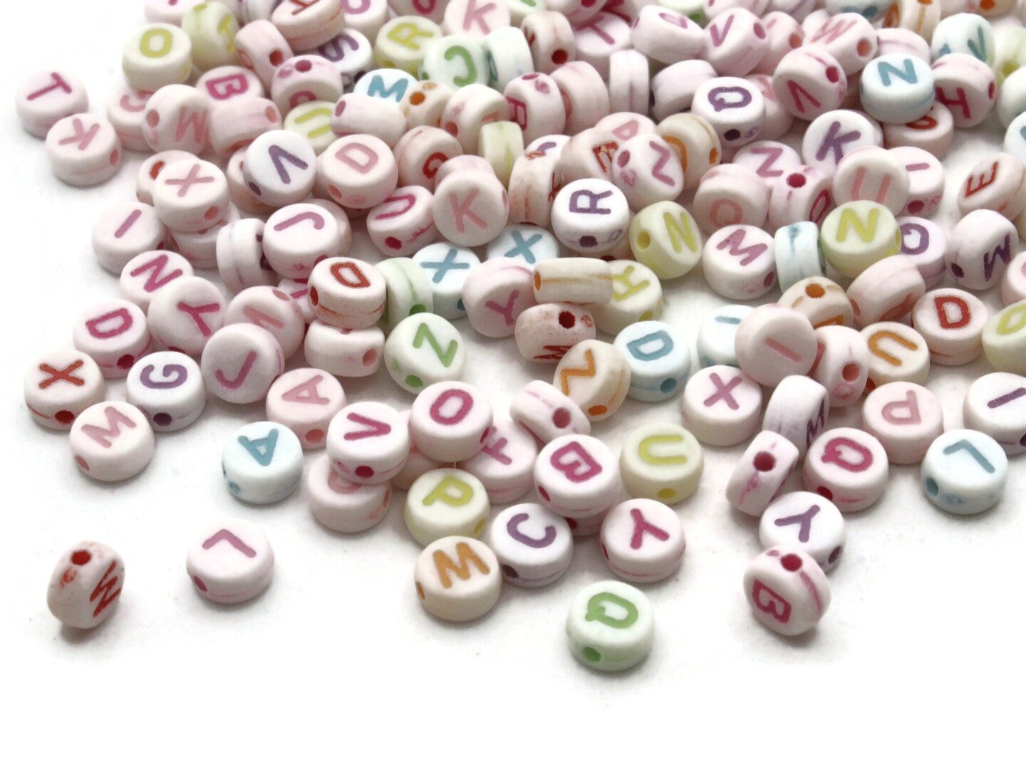 200 7mm Multicolor Alphabet Beads Plastic Flat Round Letter Beads Coin Beads