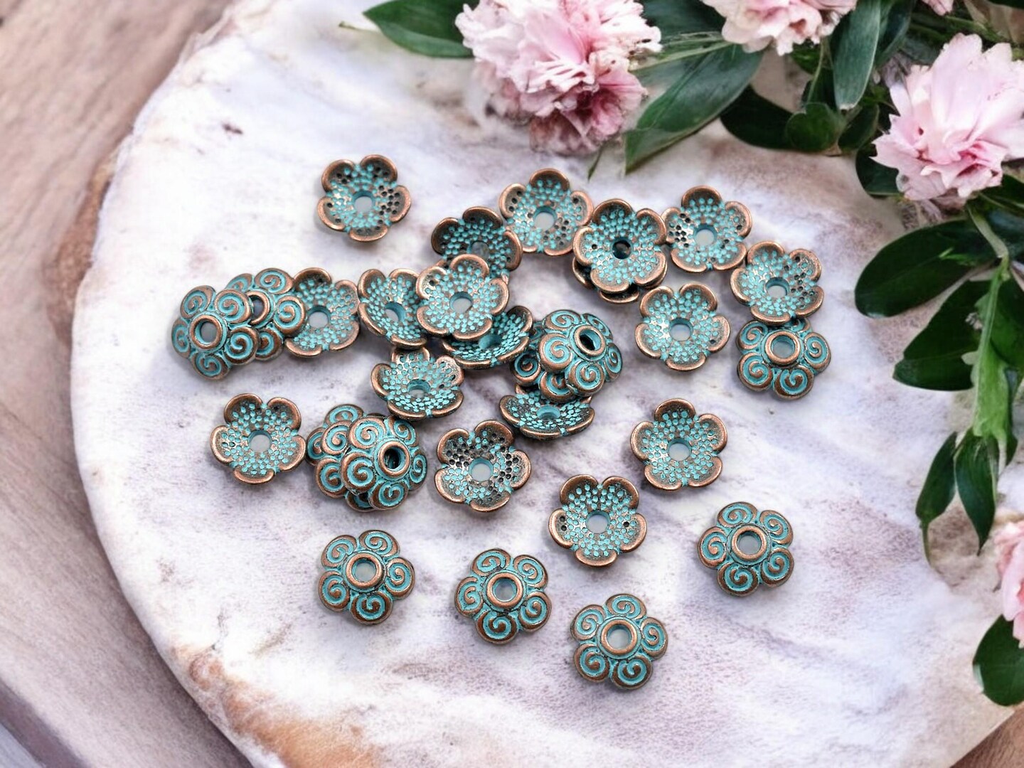 *200* 8mm Copper Patina Bead Caps