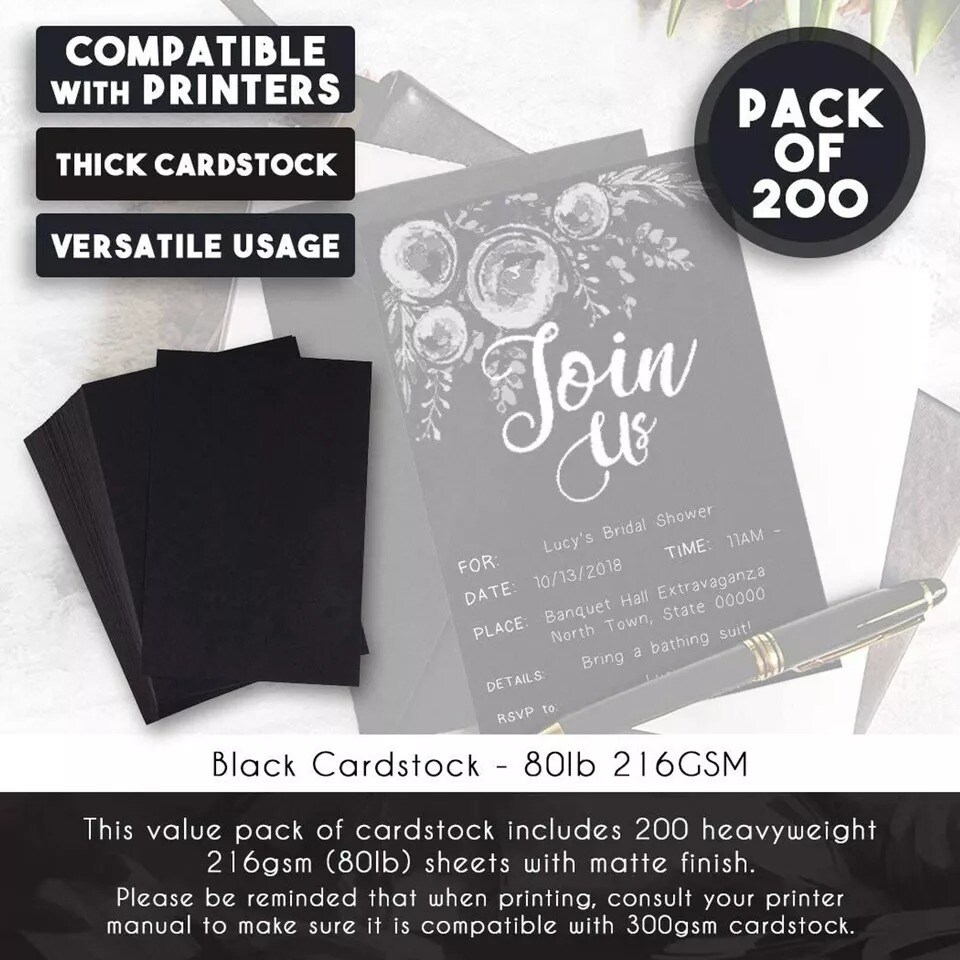 200 PCS Black Cardstock Paper 4x6 Heavyweight Smooth for Invitation Announcement