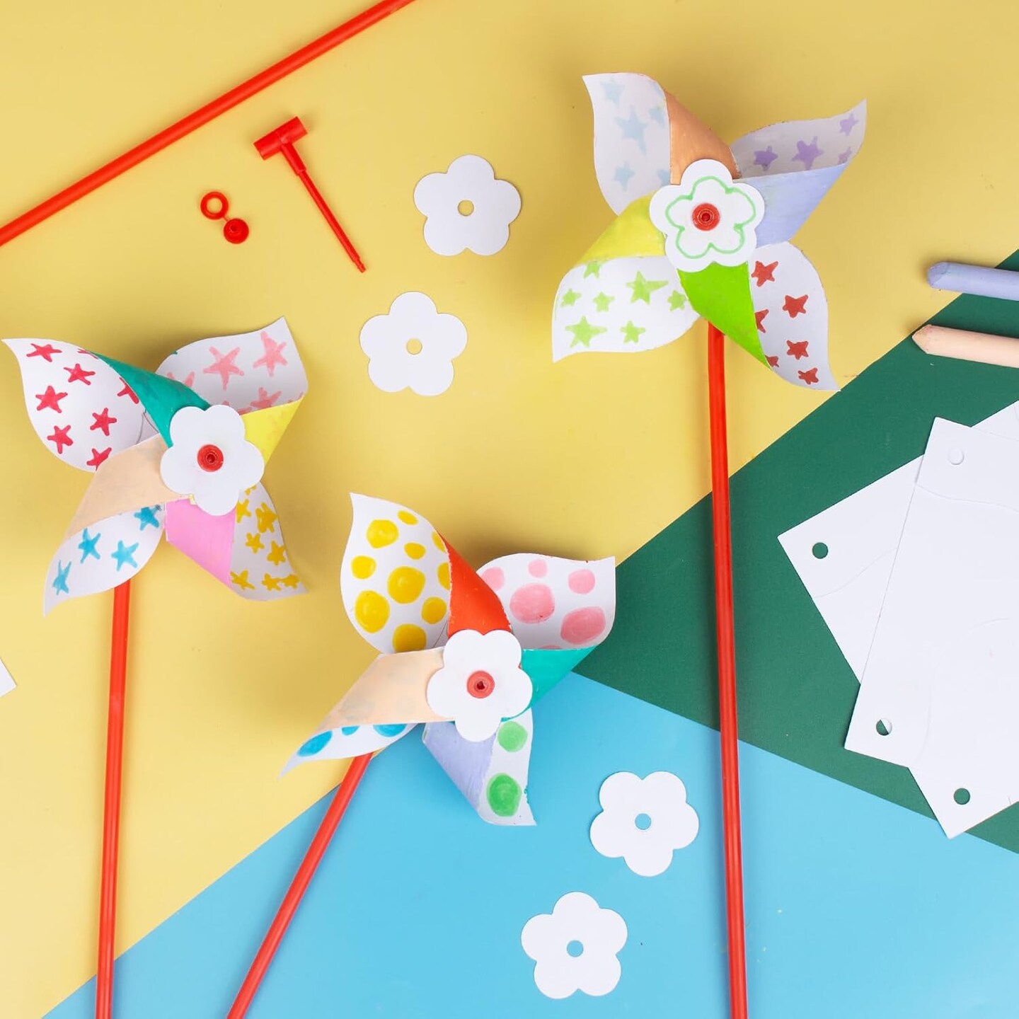 200 Pcs DIY Pinwheels for Kids Bulk Blank Paper Pinwheels Color Your Own Pinwheels for Spring Summer Craft for Kids Boys Girls School Group Daycare Home Fun Graffiti Art Craft
