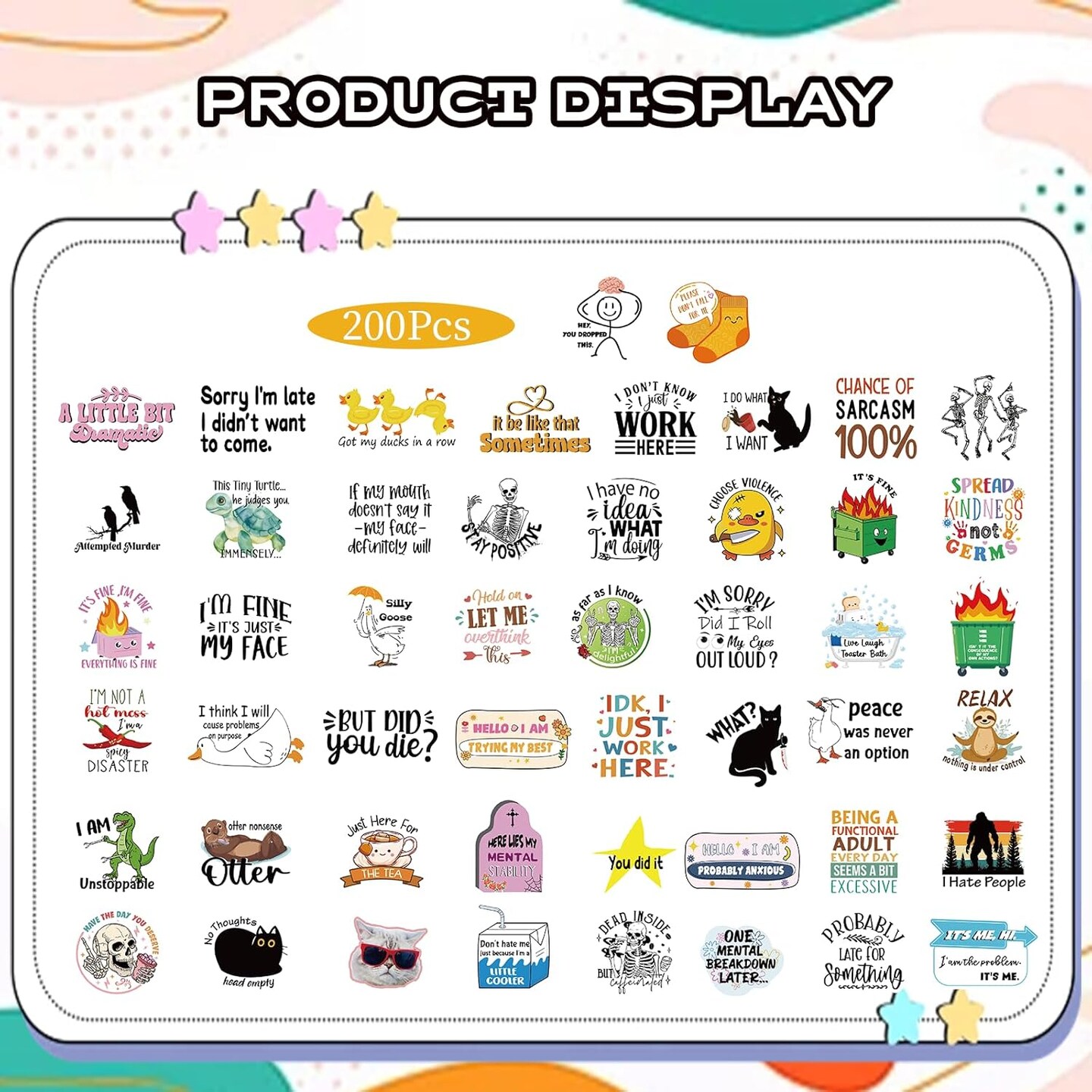 200 Pcs Funny Water Bottle Humor Stickers for Teens