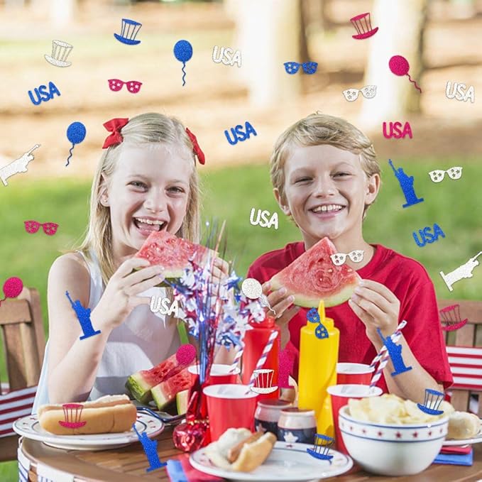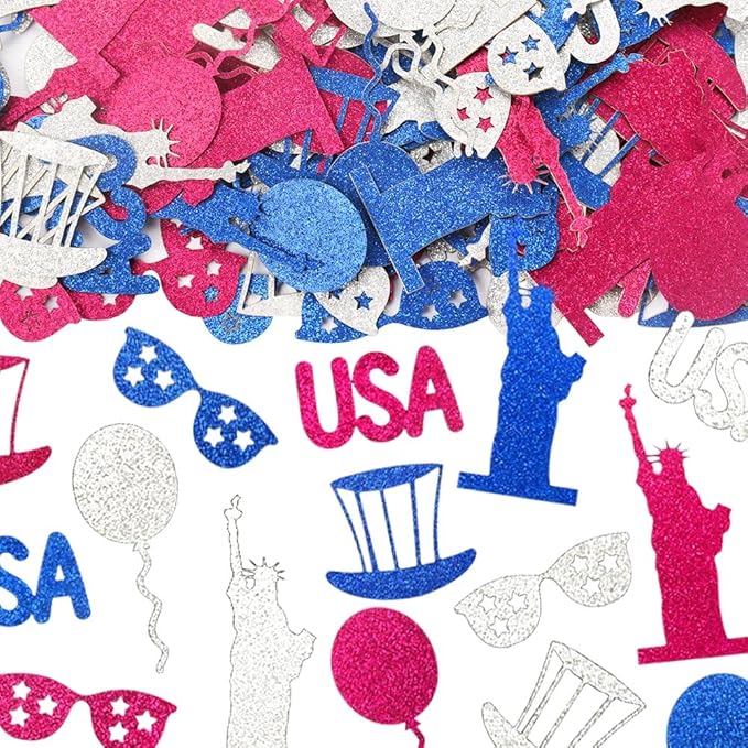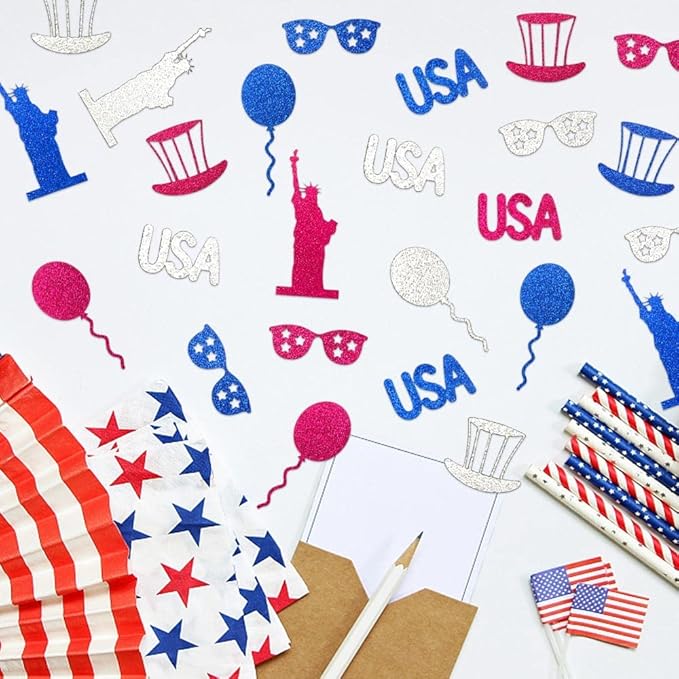 200 PCS Veterans Day Patriotic Confetti Decorations for Table, USA Balloon Sequins Glitter Blue Red Table Confetti Statue of Liberty Paper Confetti for Patriotic Decorations Labor Day Party