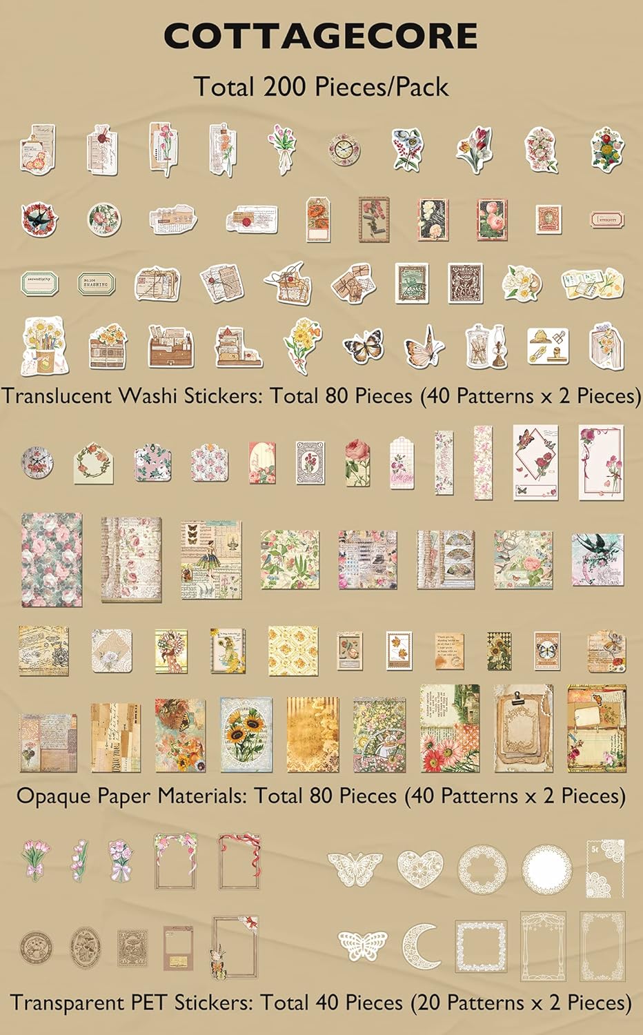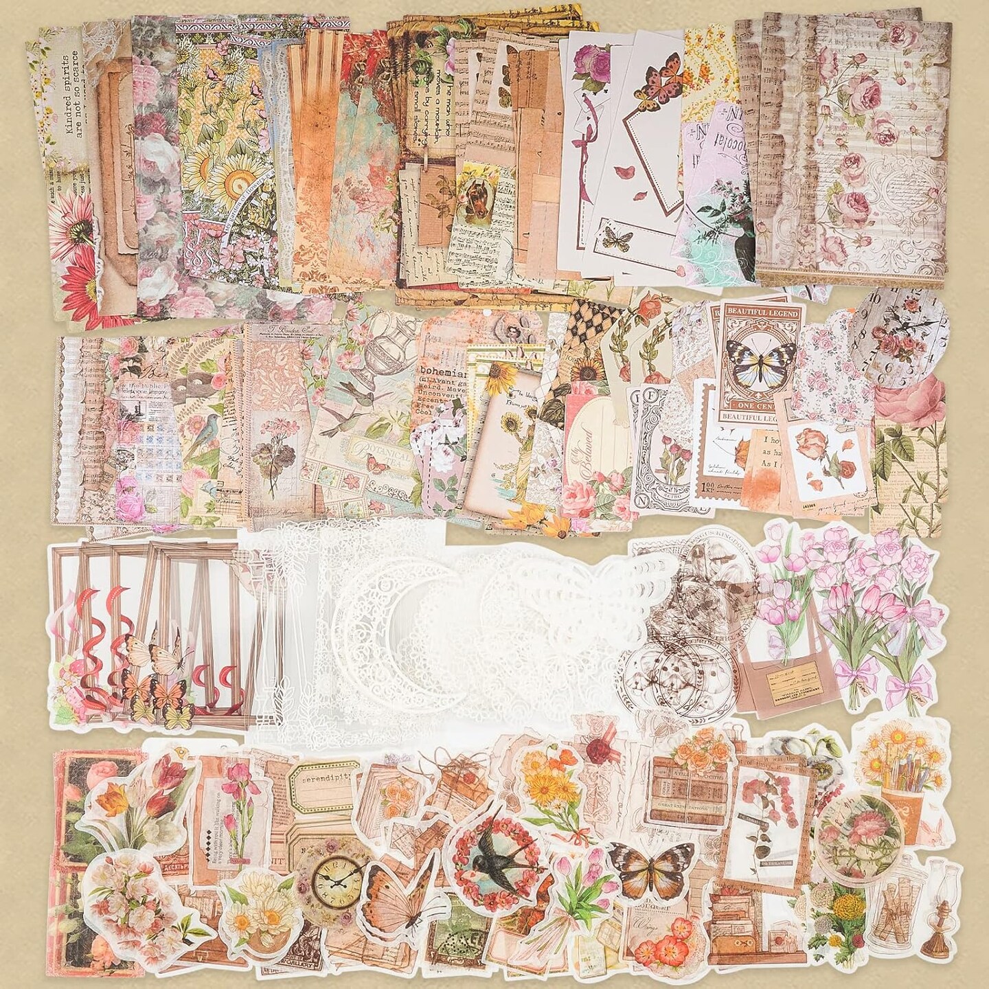 200 Piece Vintage Ephemera Bundle - Paper & Sticker Kit
