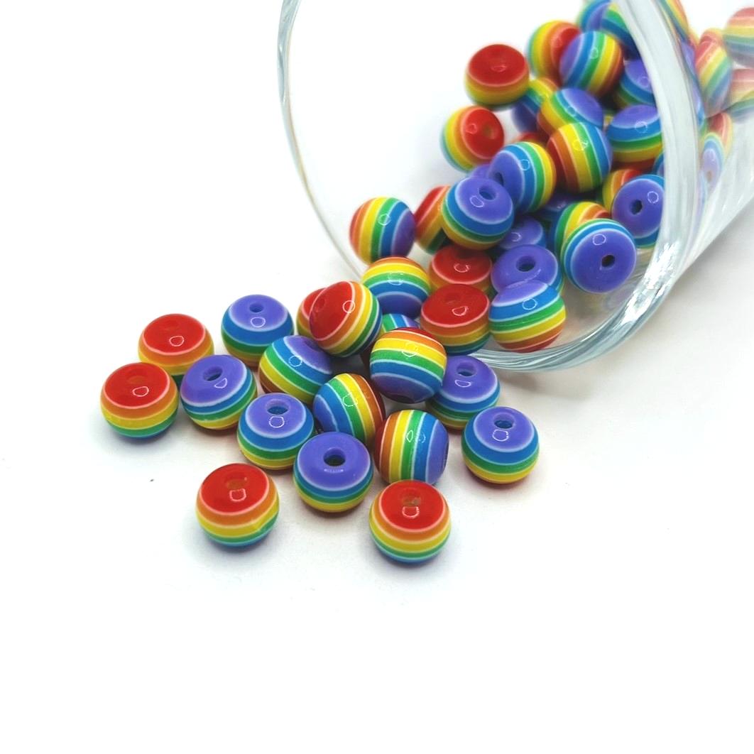 200 Pieces: 8mm Striped Round Rainbow Beads