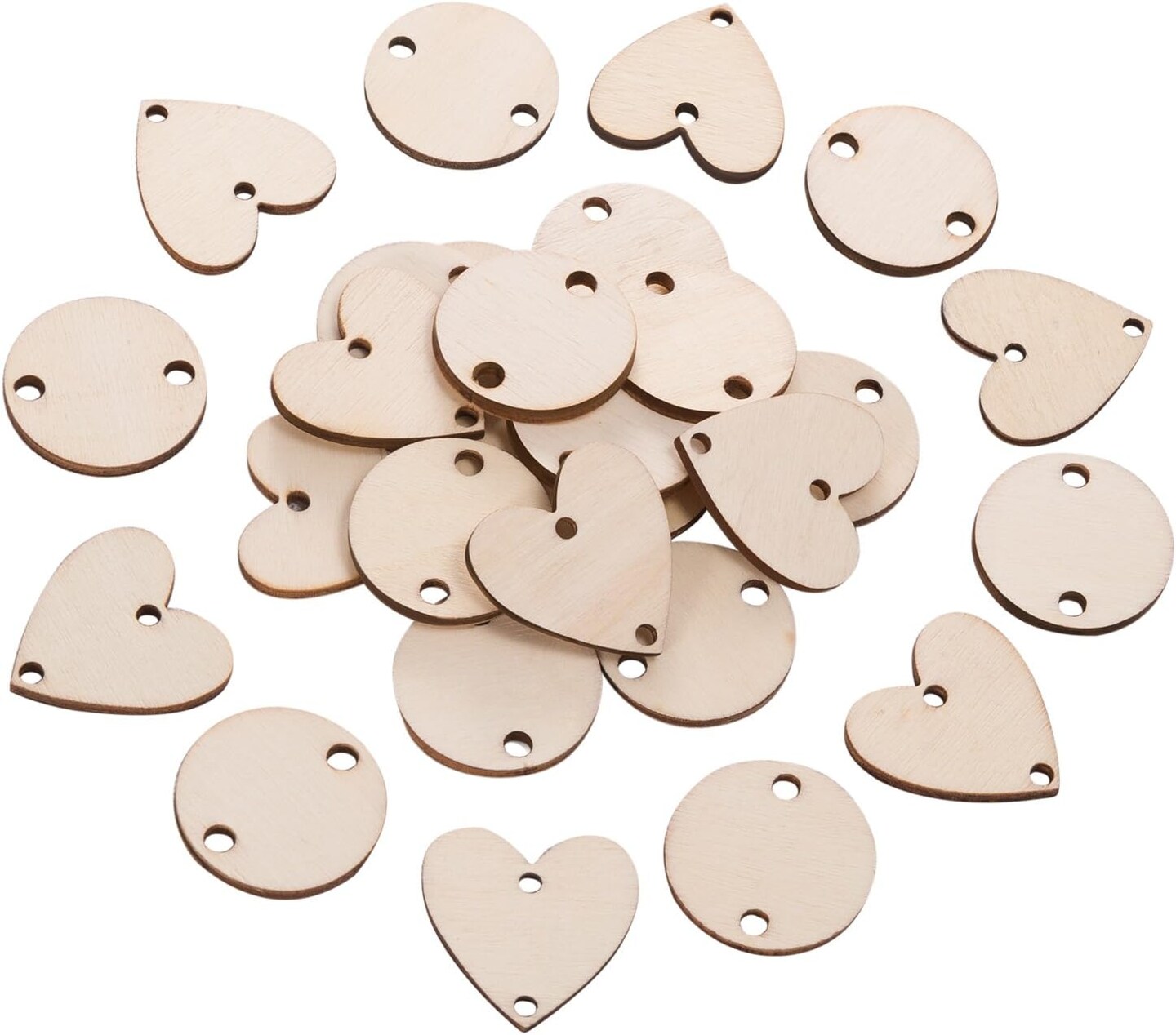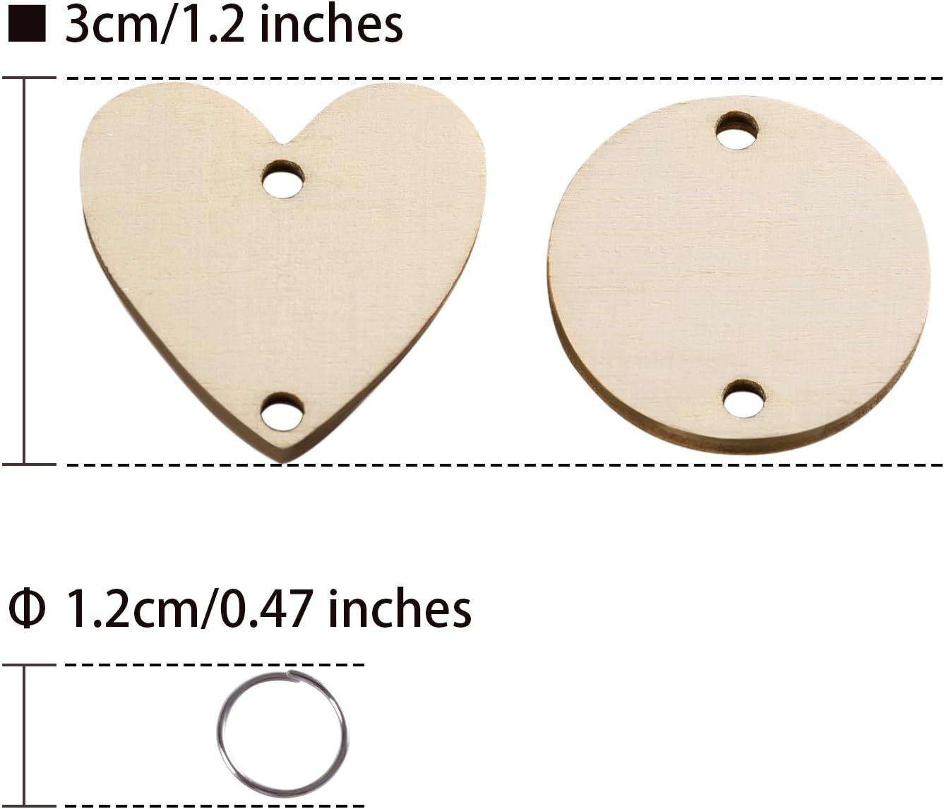 200 Pieces in Total, Wooden Circles Wooden Heart Tags (Set 1) 3.9 x 2 x 1.2 inches