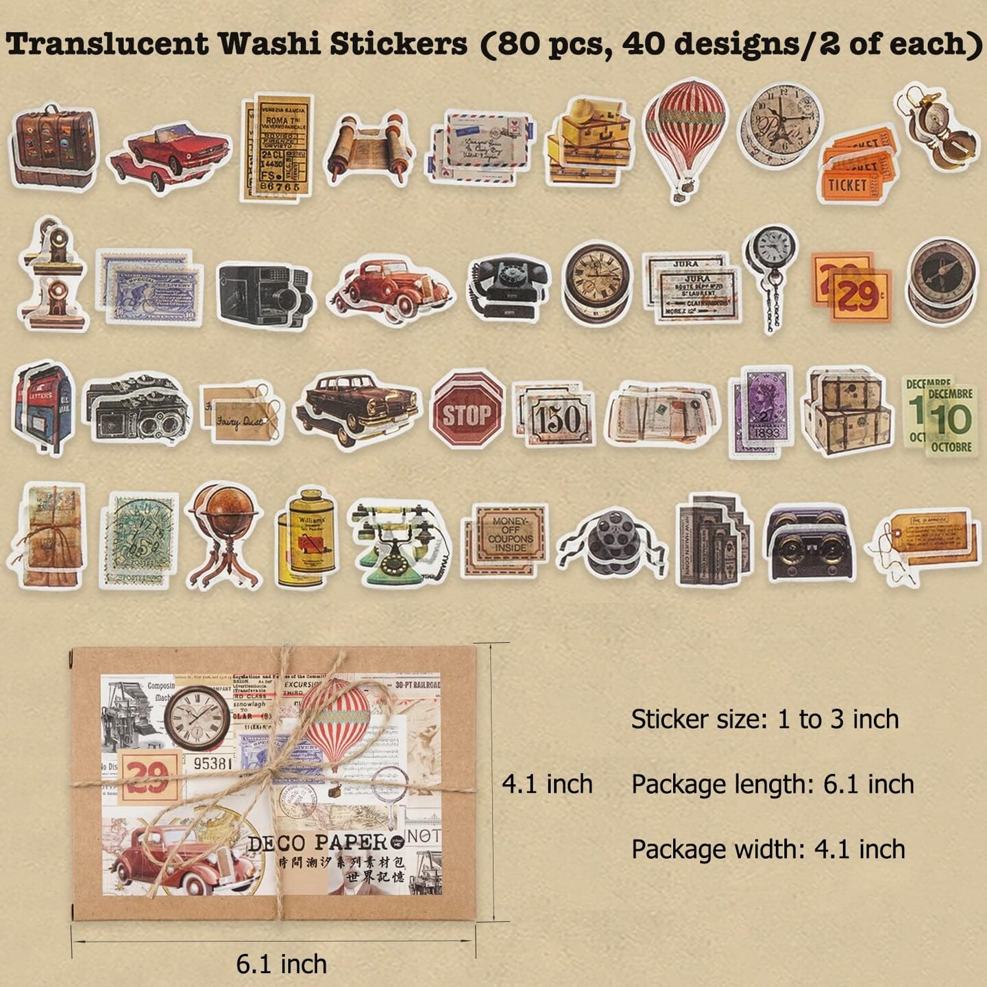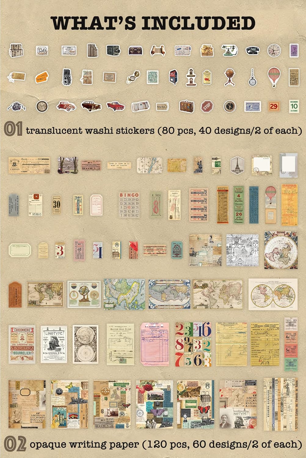 200 Pieces Vintage Ephemera Planner Sticker (World Memory) 4 x 6 inches
