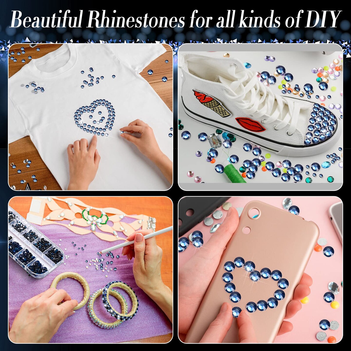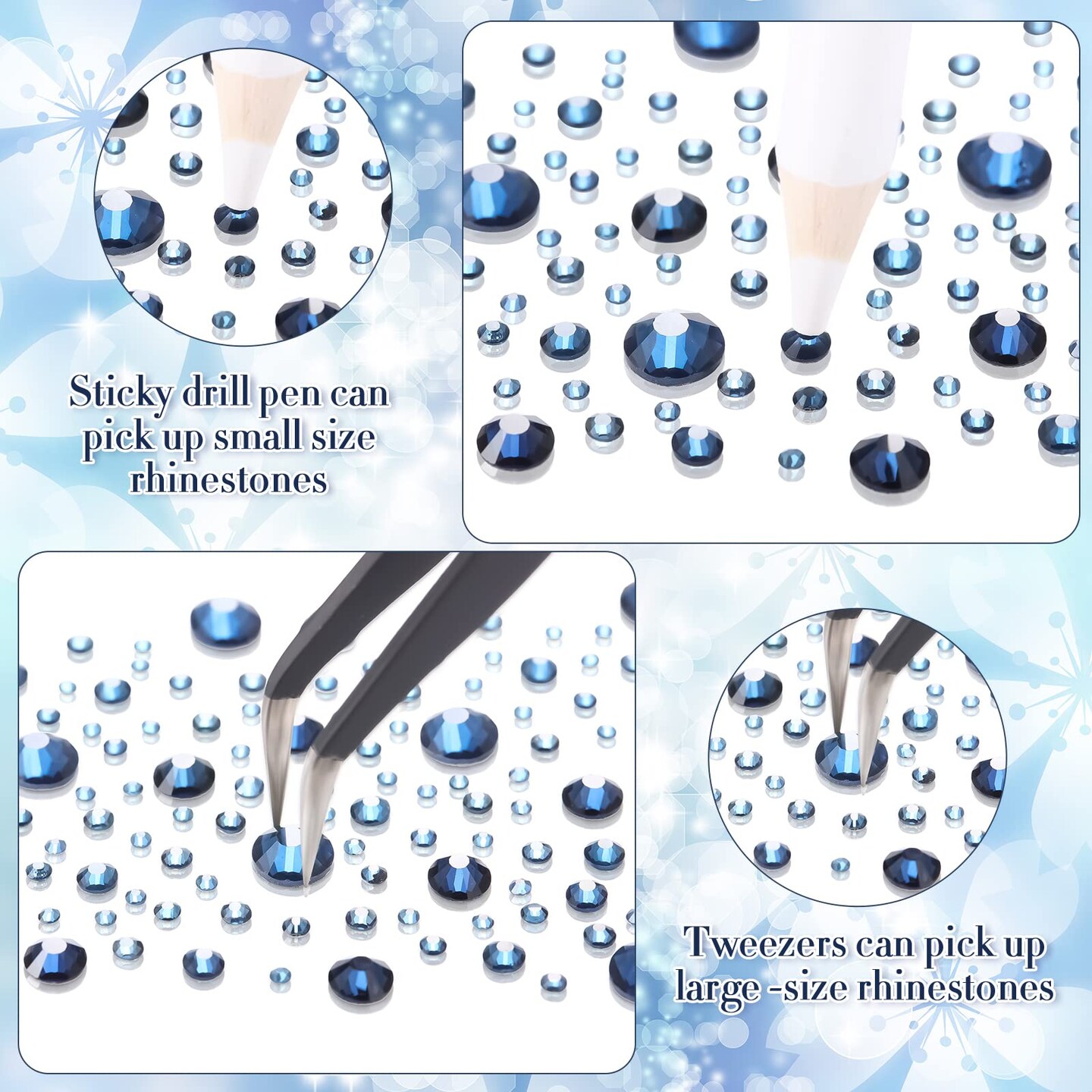 2000 Pieces Flat Back Gems Rhinestones 6 Sizes (1.5-6 Mm) Round Crystal Rhinestones with Pick up Tweezer and Rhinestones Picking Pen for Crafts Nail Clothes Shoes Bags DIY Art (Navy Blue)