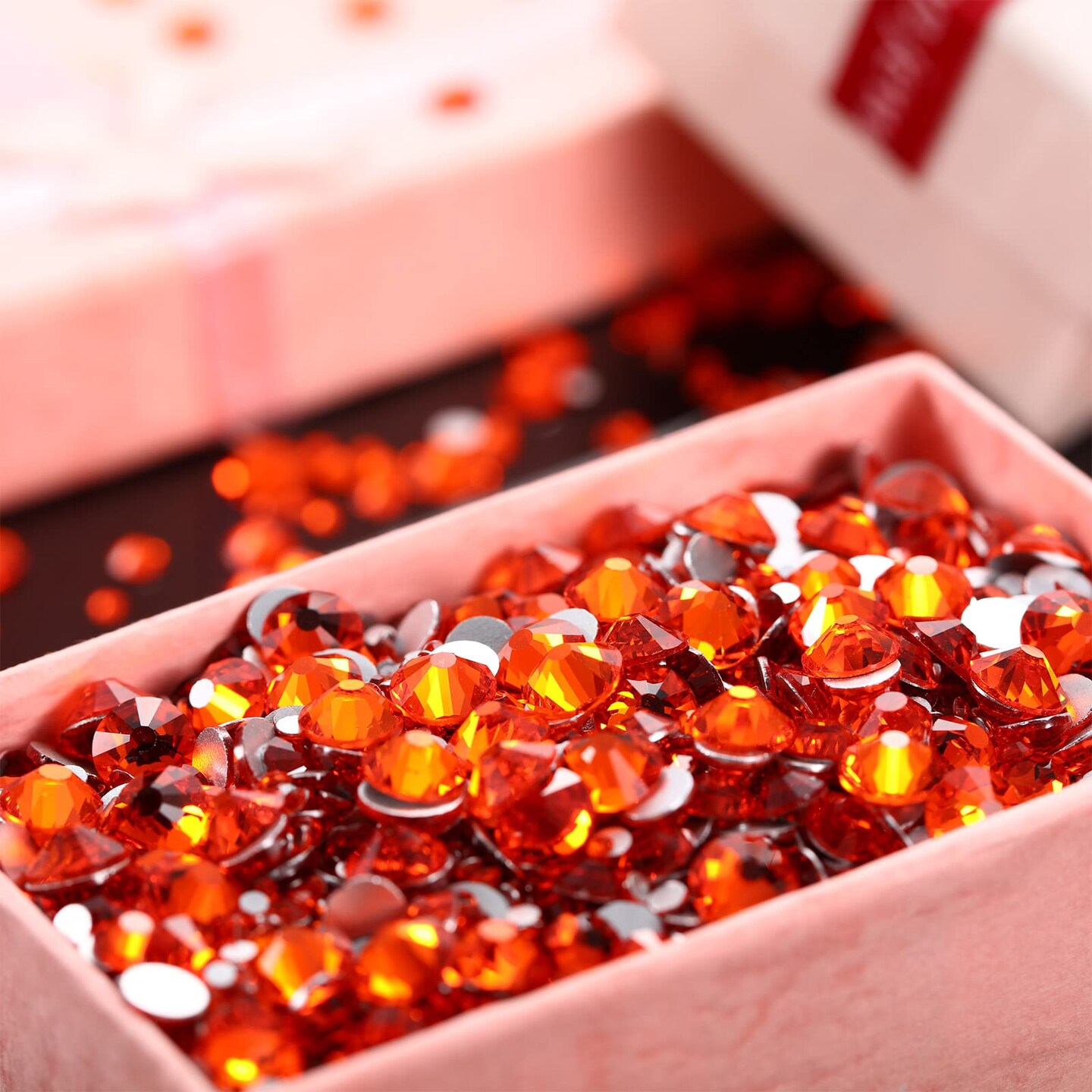 2000 Pieces Flat Back Gems Rhinestones 6 Sizes (1.5-6 Mm) Round Crystal Rhinestones with Pick up Tweezer and Rhinestones Picking Pen for Crafts Nail Clothes Shoes Bags DIY Art (Orange)