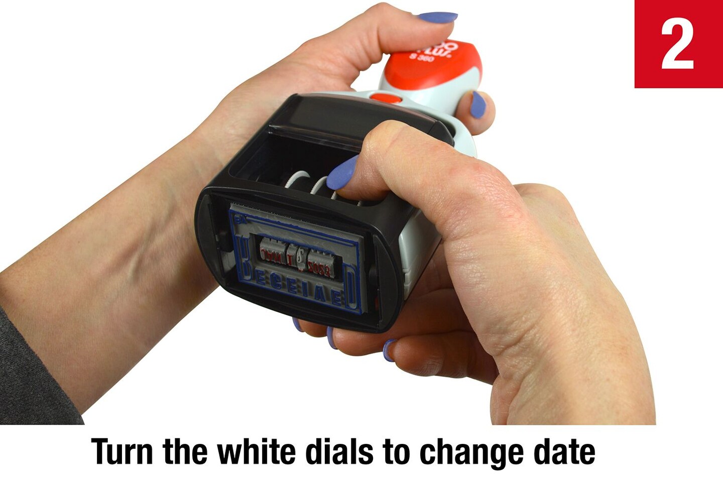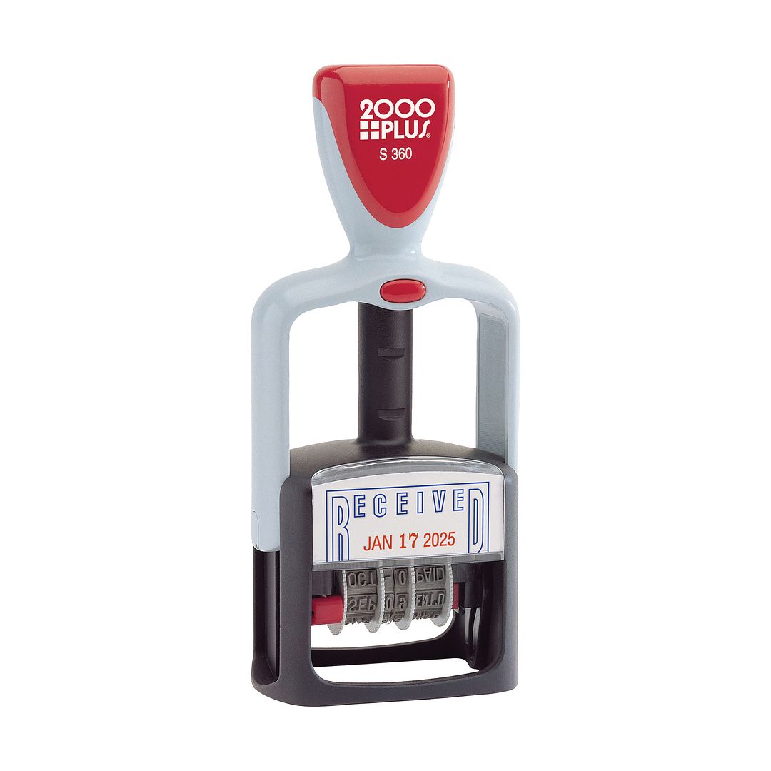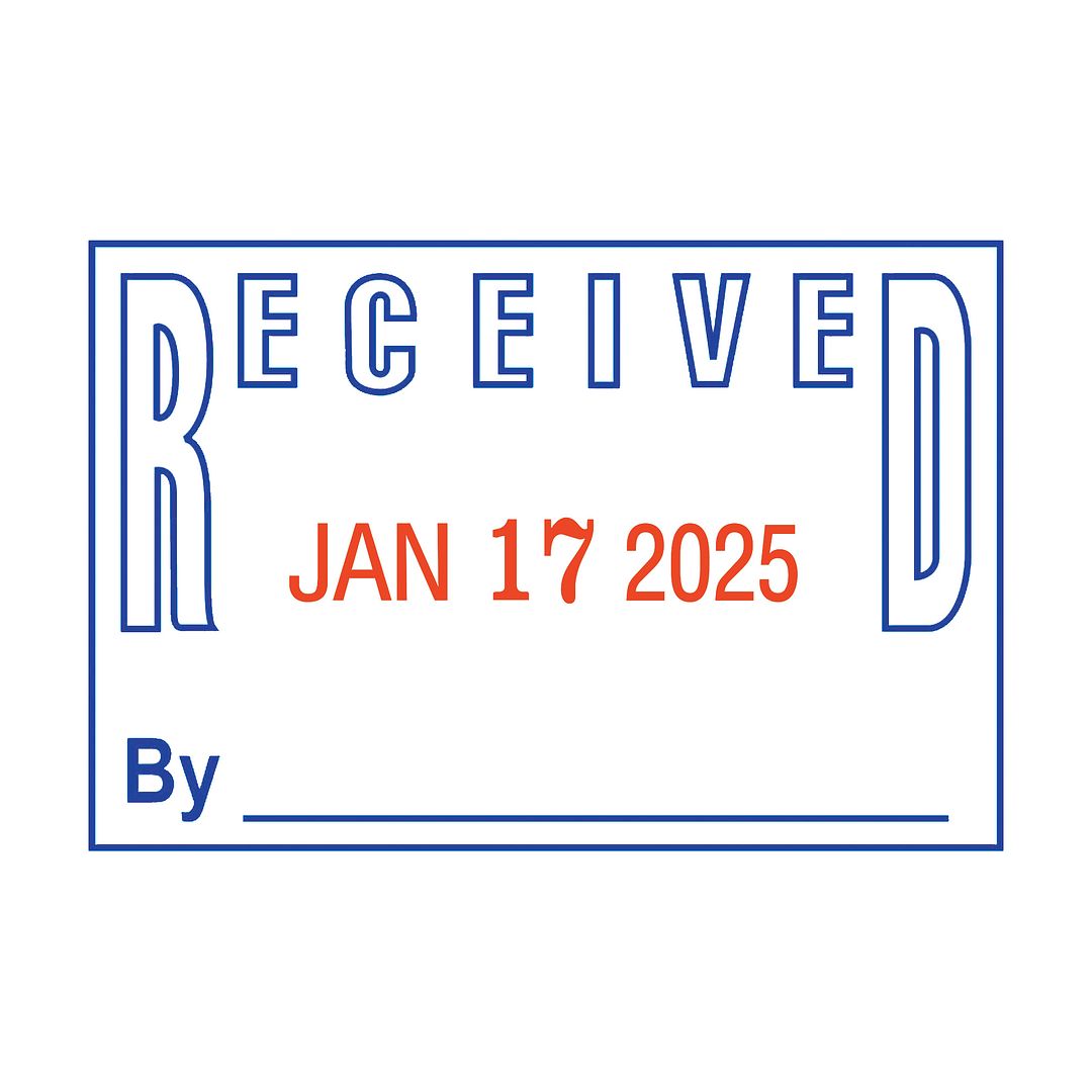 2000 PLUS Date and Phrase Stamp with Band Shield, 2-Color, RECEIVED, 1-1/4" x 1-13/16" Impression, Self-Inking, Red and Blue Ink
