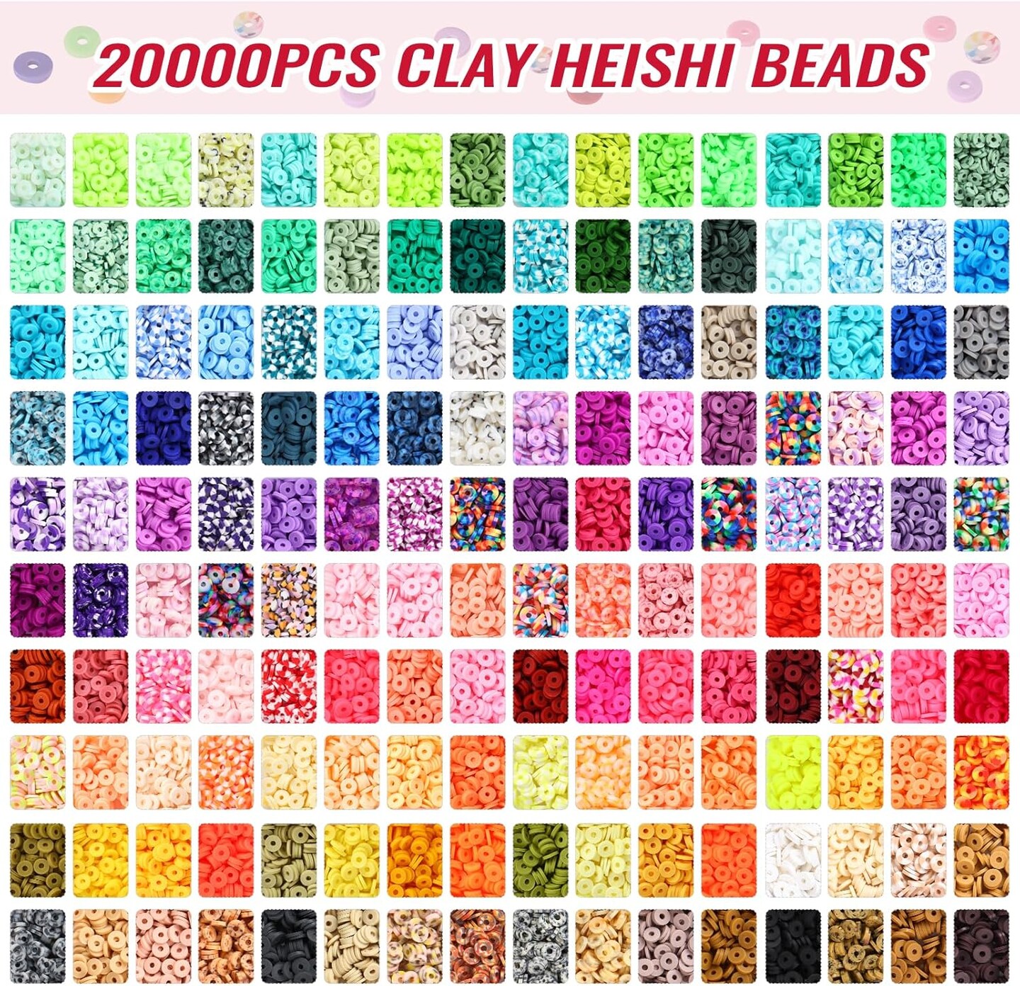 20,000 Piece Clay Beads Bracelet Making Kit, 160 Colors Polymer Beads Spacer Heishi Beads, Jewelry Kit with Charms and Elastic Strings, DIY Crafts Gift
