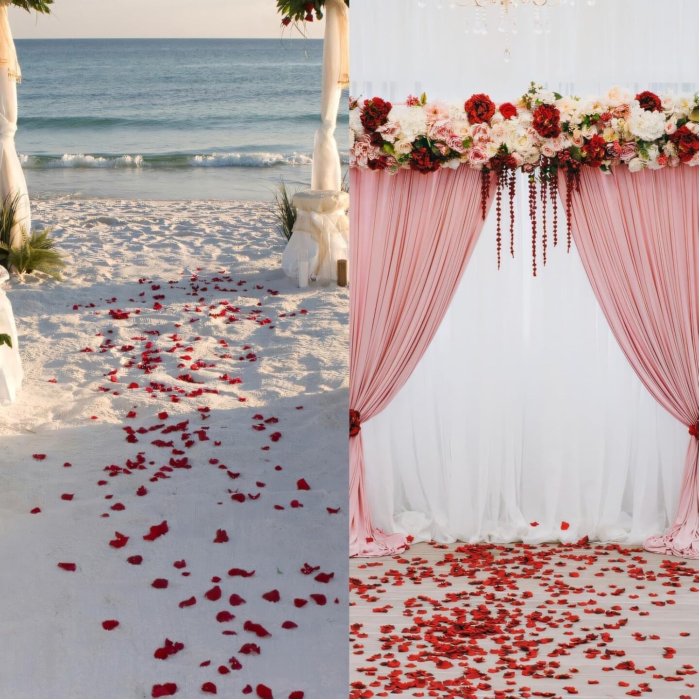 2000-Piece Artificial Silk Rose Petals – Red & White Fake Rose Petals for Romantic Nights, Weddings, Proposals, Anniversaries, Parties, and Event Decorations