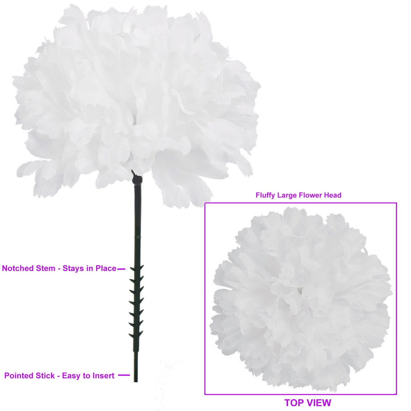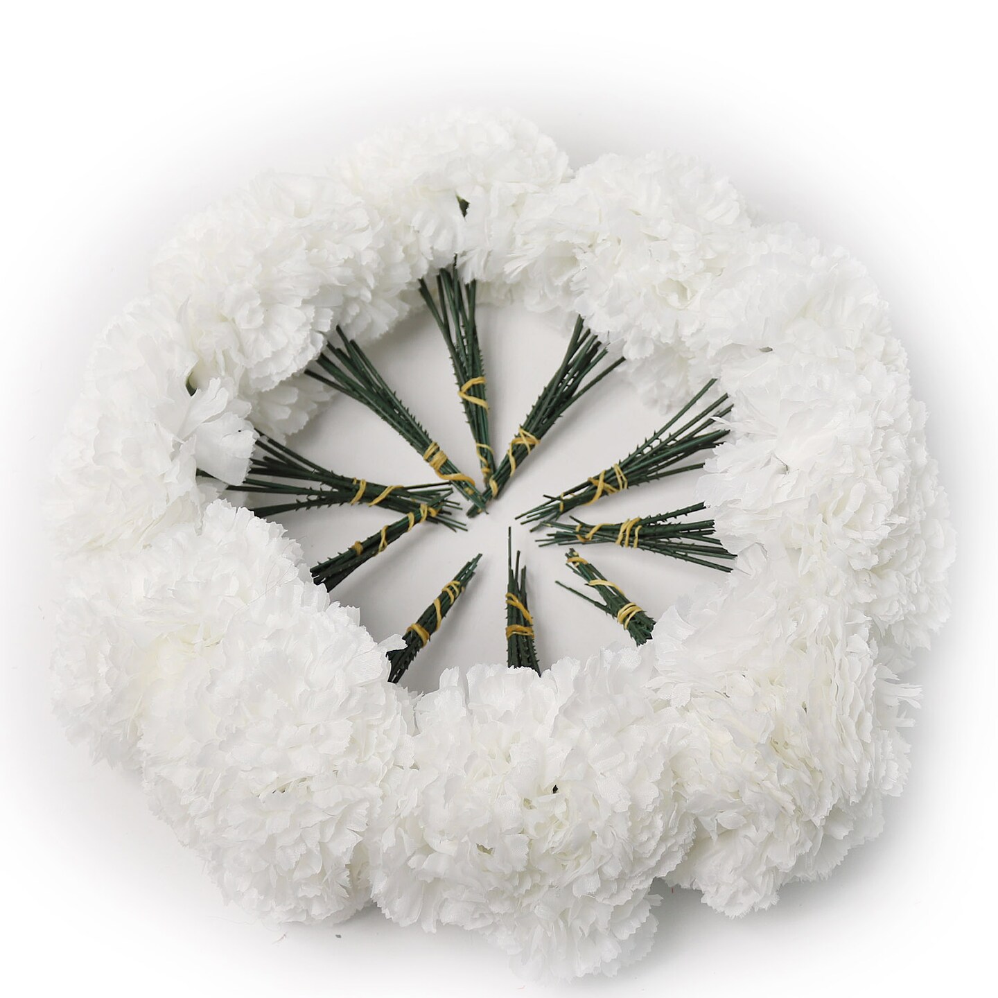 200-Pack: White Carnation Picks, 5" Stems, 3.5" Wide, Floral Home by Artificial Flowers