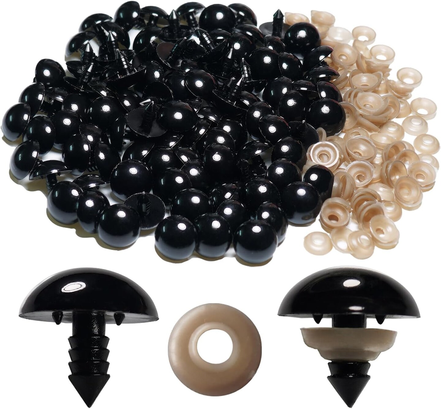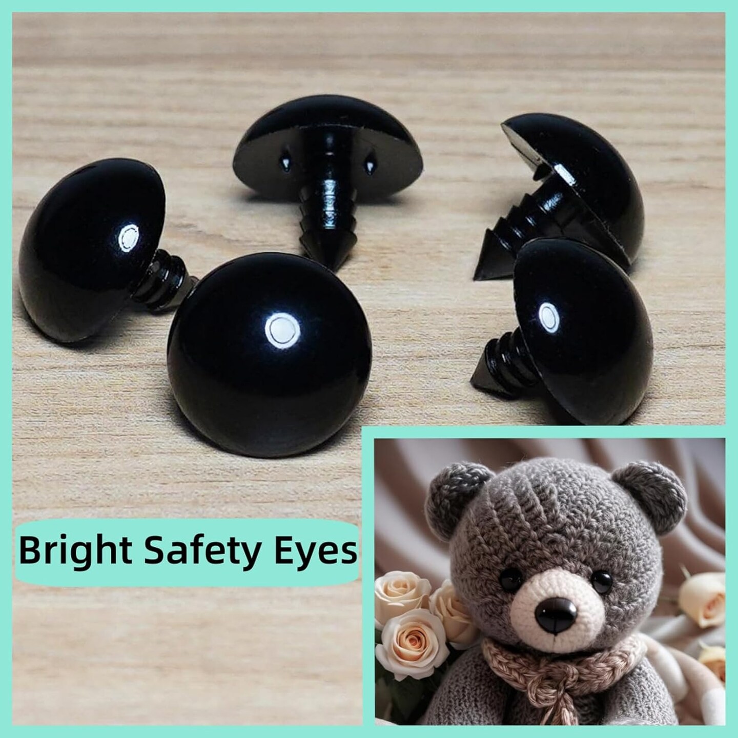 200pcs 20mm Black Safety Eyes with Washers – Large Plastic Crochet Craft Eyes for Amigurumi, Dolls, Stuffed Animals & DIY Projects