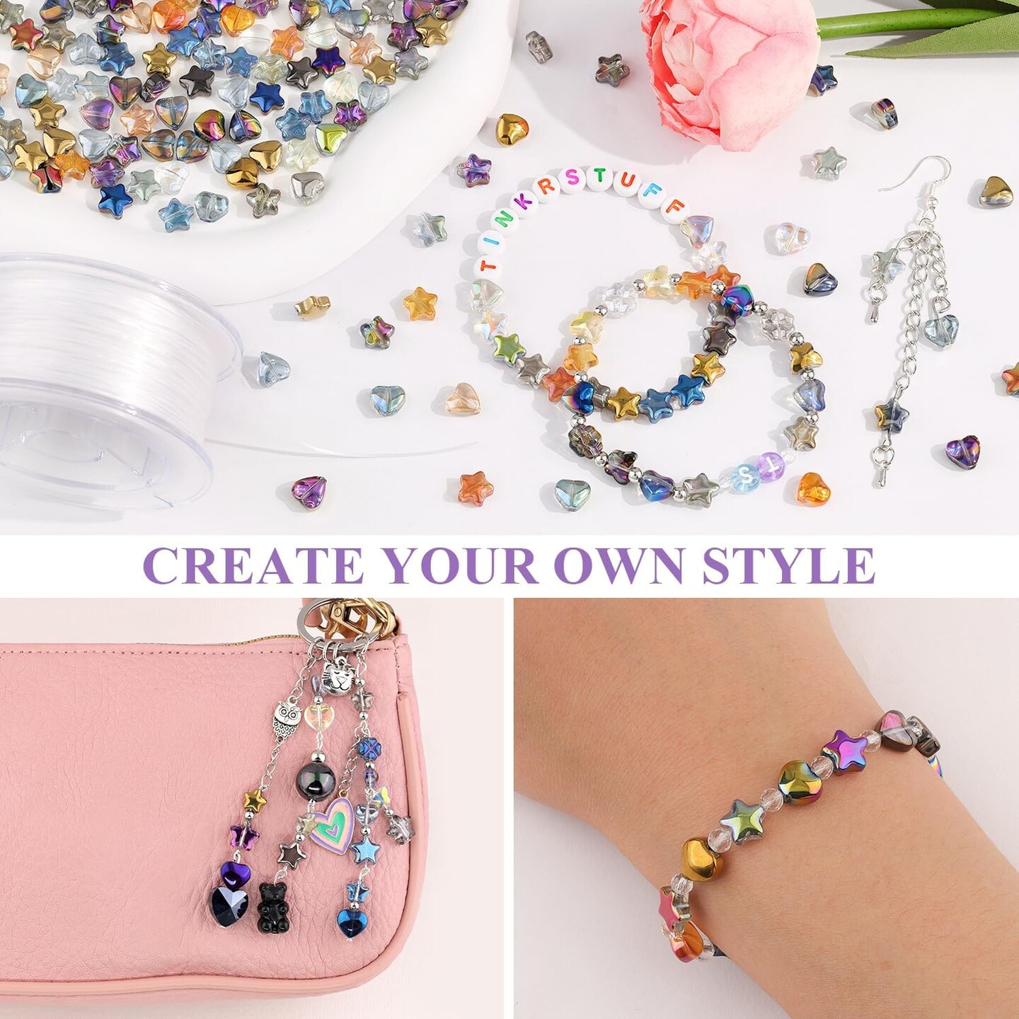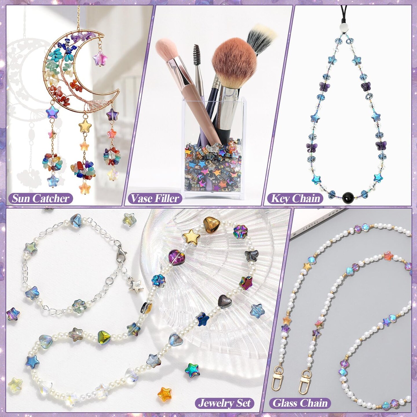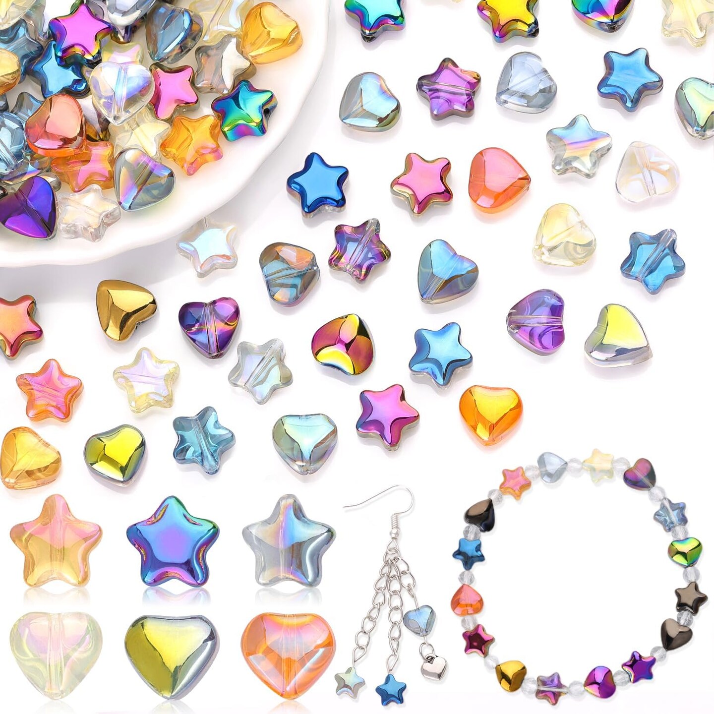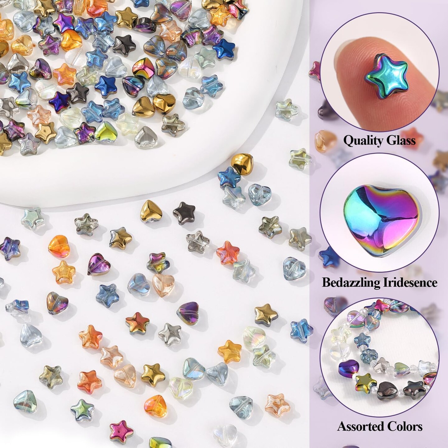200PCS 8MM Bedazzling Irisedent Glass Beads (Star+Heart-8MM)