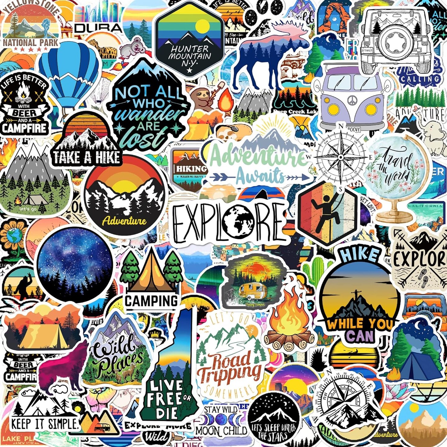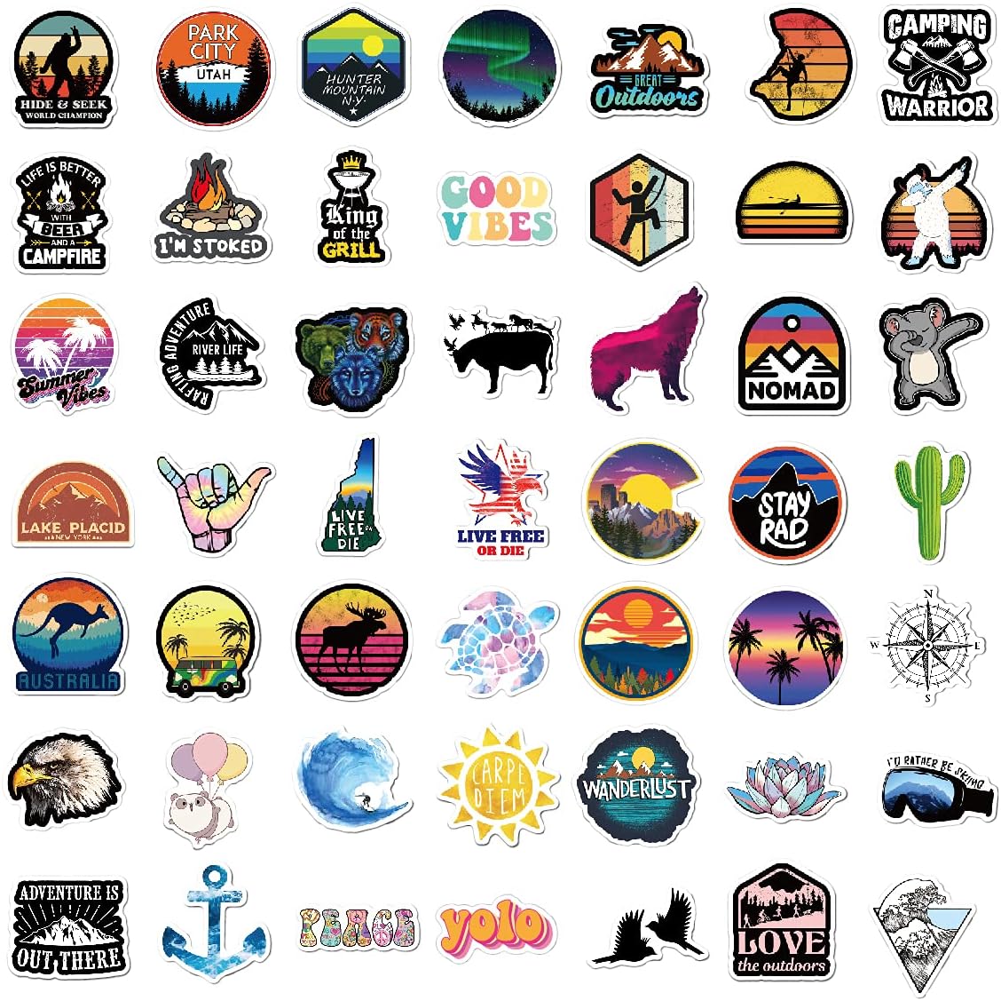 200PCS Camping Stickers - Water Bottles, Outdoor Adventure