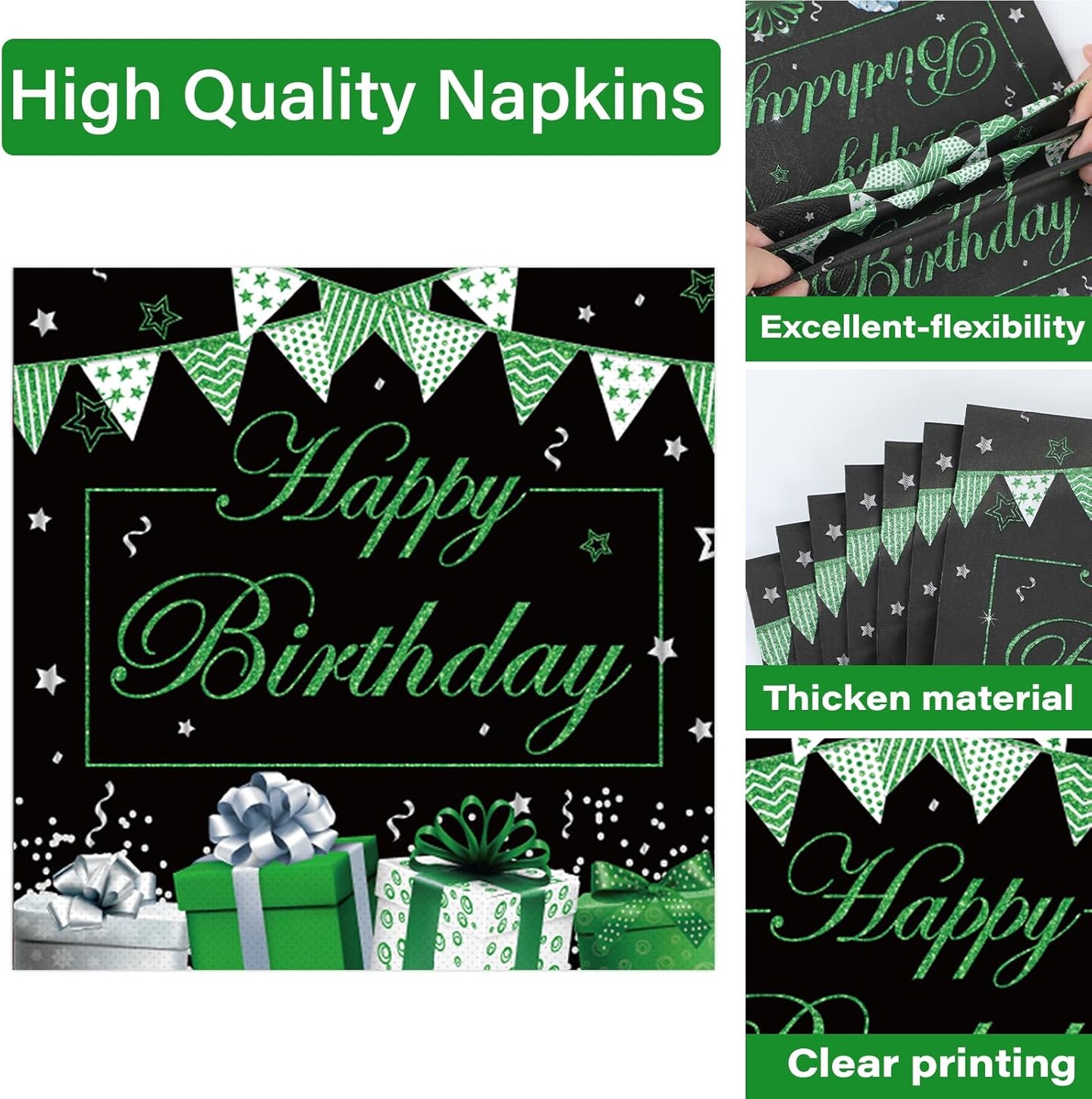 200PCS Green and Black Silver Party Tableware Set Confetti Sprinkles Green Birthday Plates Napkins Forks Table Decors for Men Women, 50 Guests