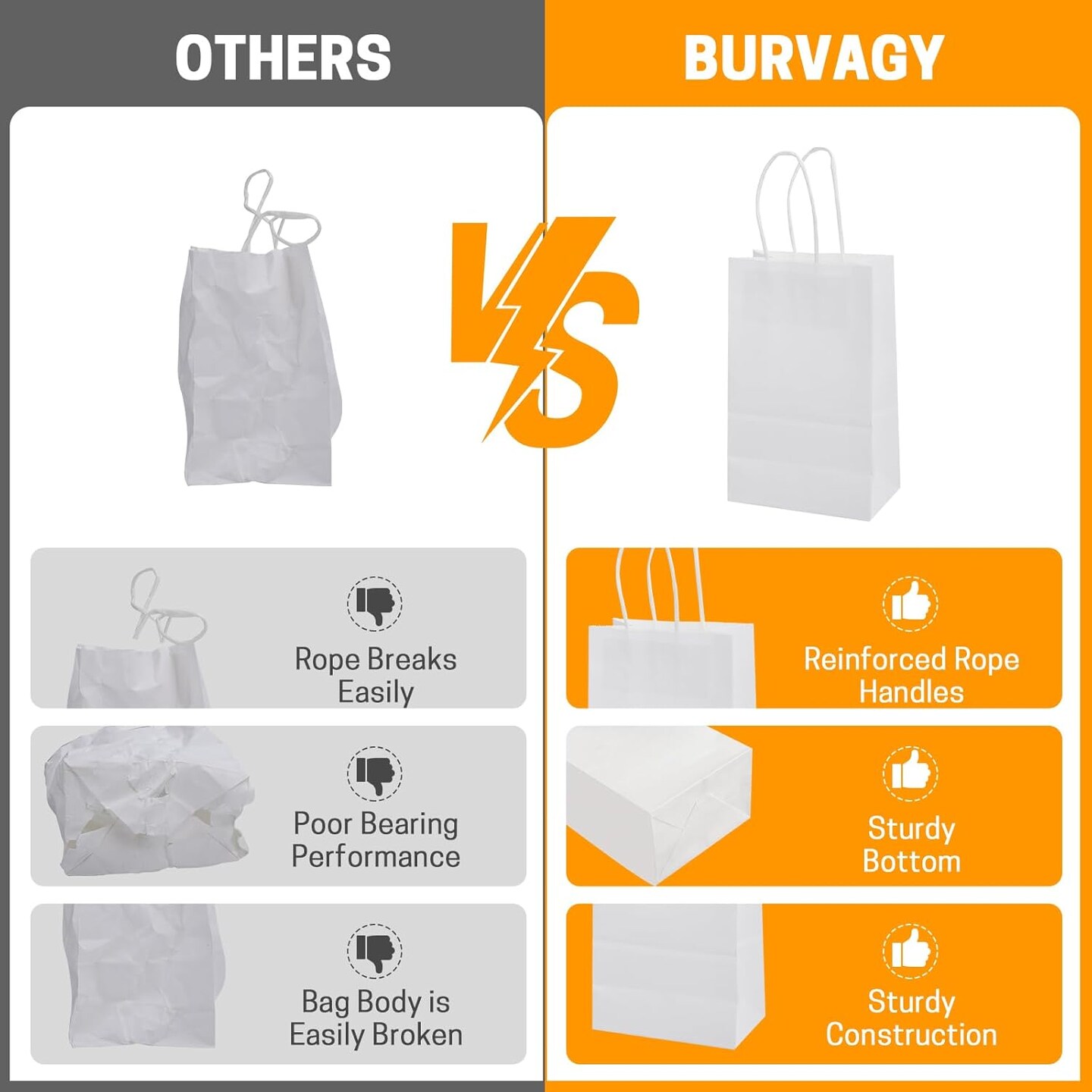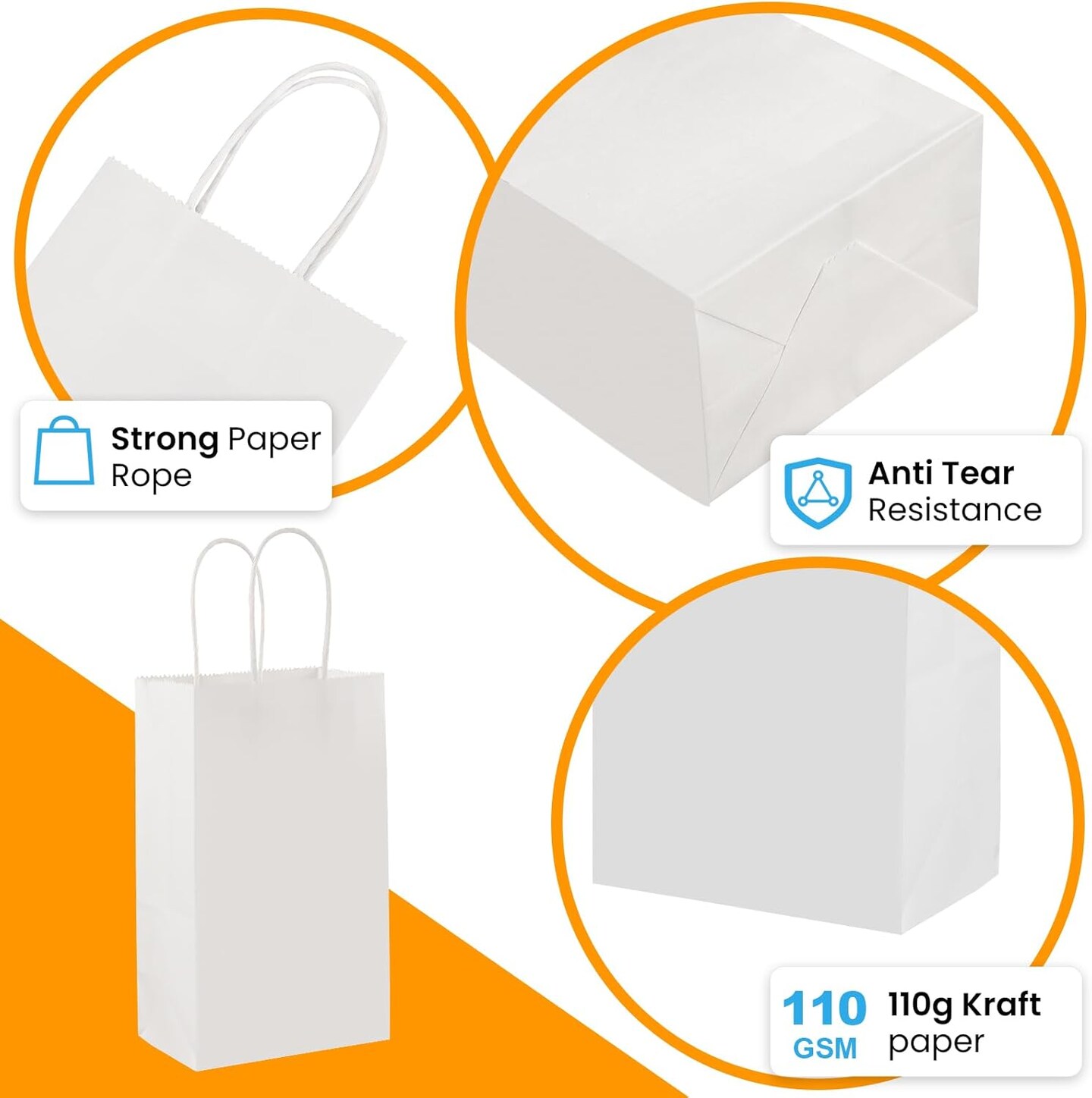 200Pcs Kraft Paper Bags 5.25x3.25x8.25 Inches Small Paper Gift Bags with Handles Bulk Grocery Retail Party Favor Shopping Bags (White)