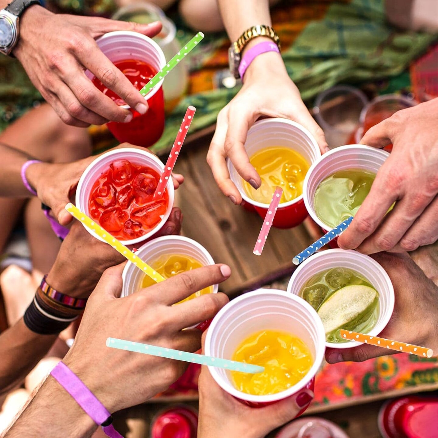 200PCS Multi-Color Biodegradable Paper Straws for Party Supplies,Birthday,Bridal/Baby Shower, Christmas Decorations and Holiday Celebrations (Dot)
