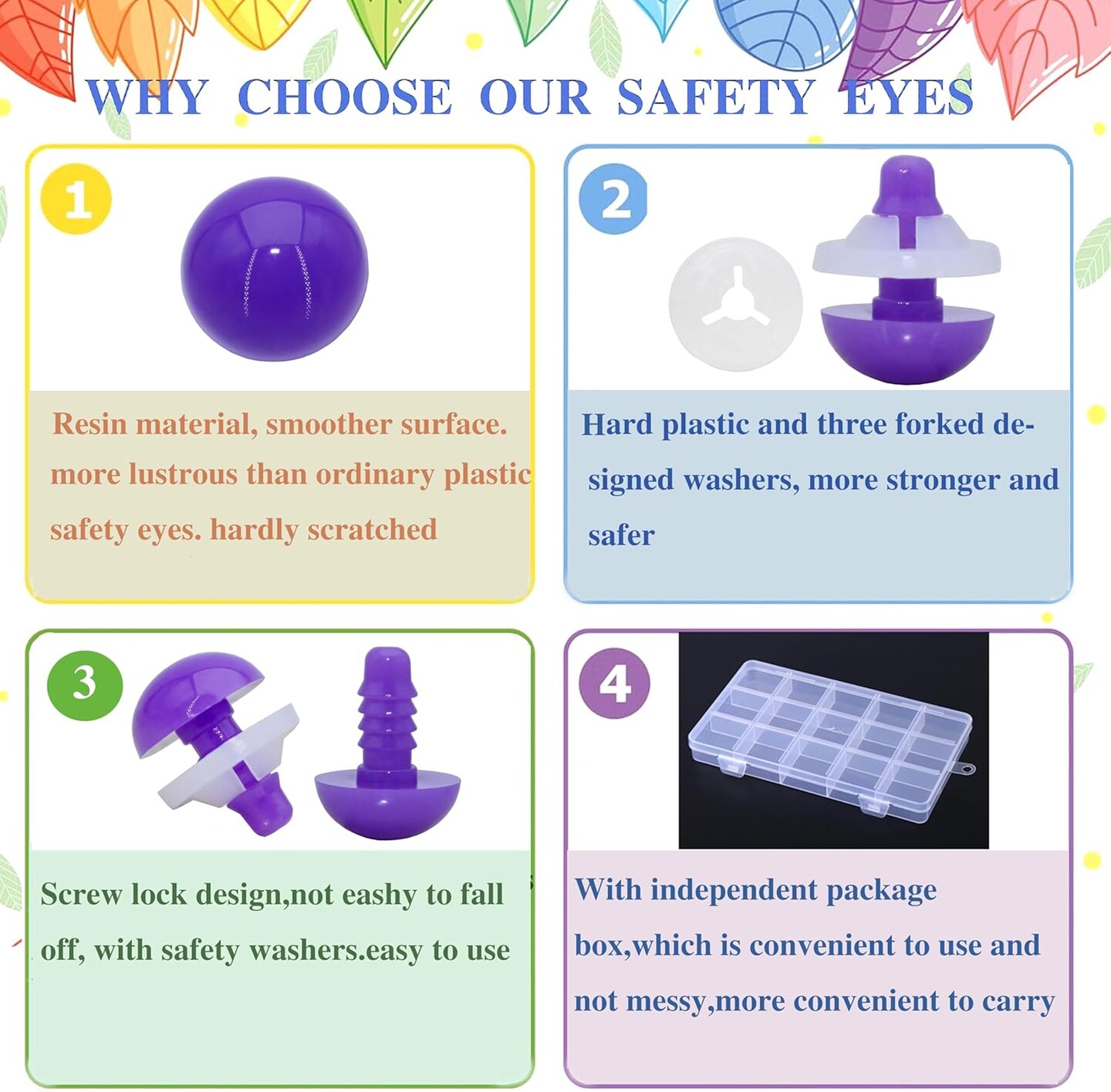 200pcs Safety Eyes with Secure Washers for Amigurumi – 10mm, 15mm, 24mm Translucent Colored Craft Eyes