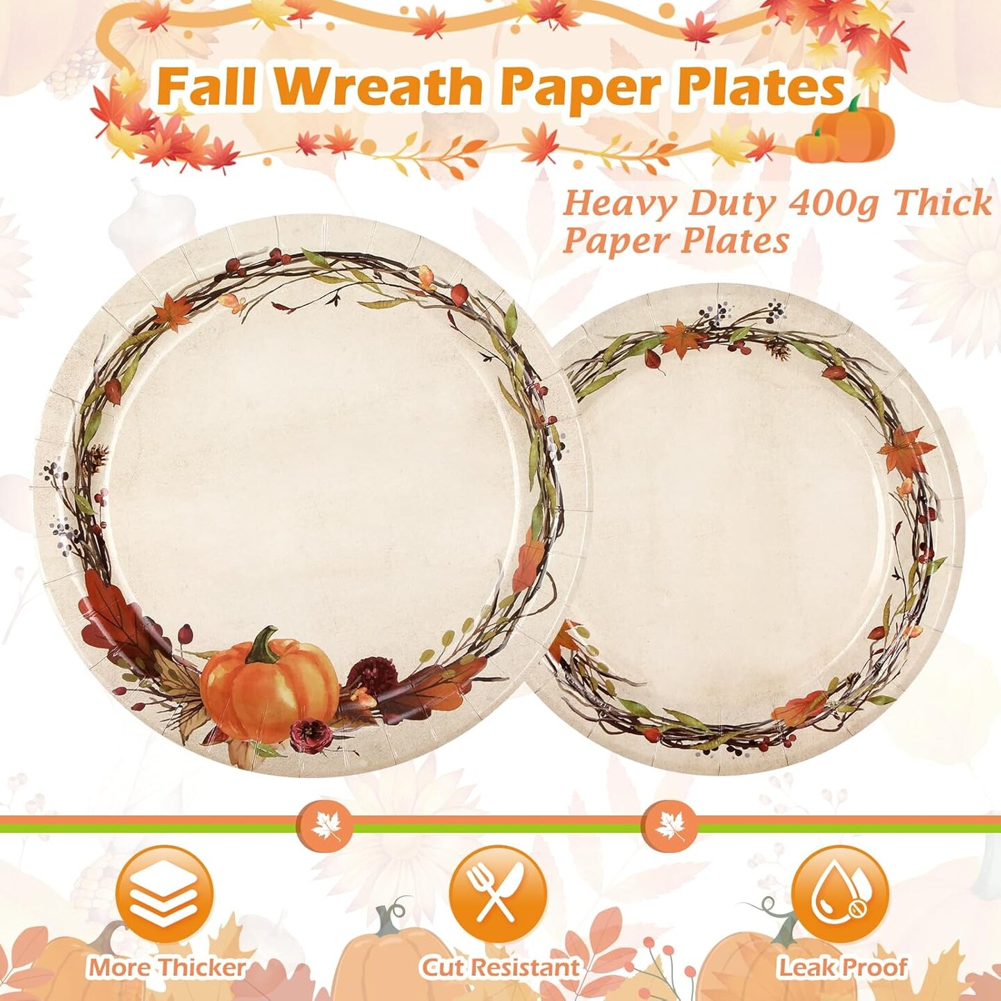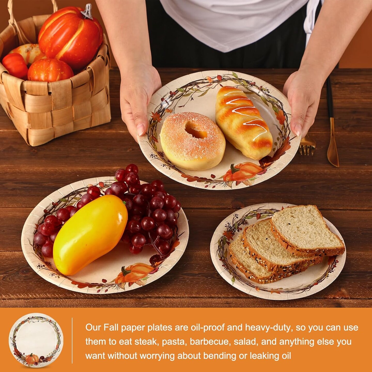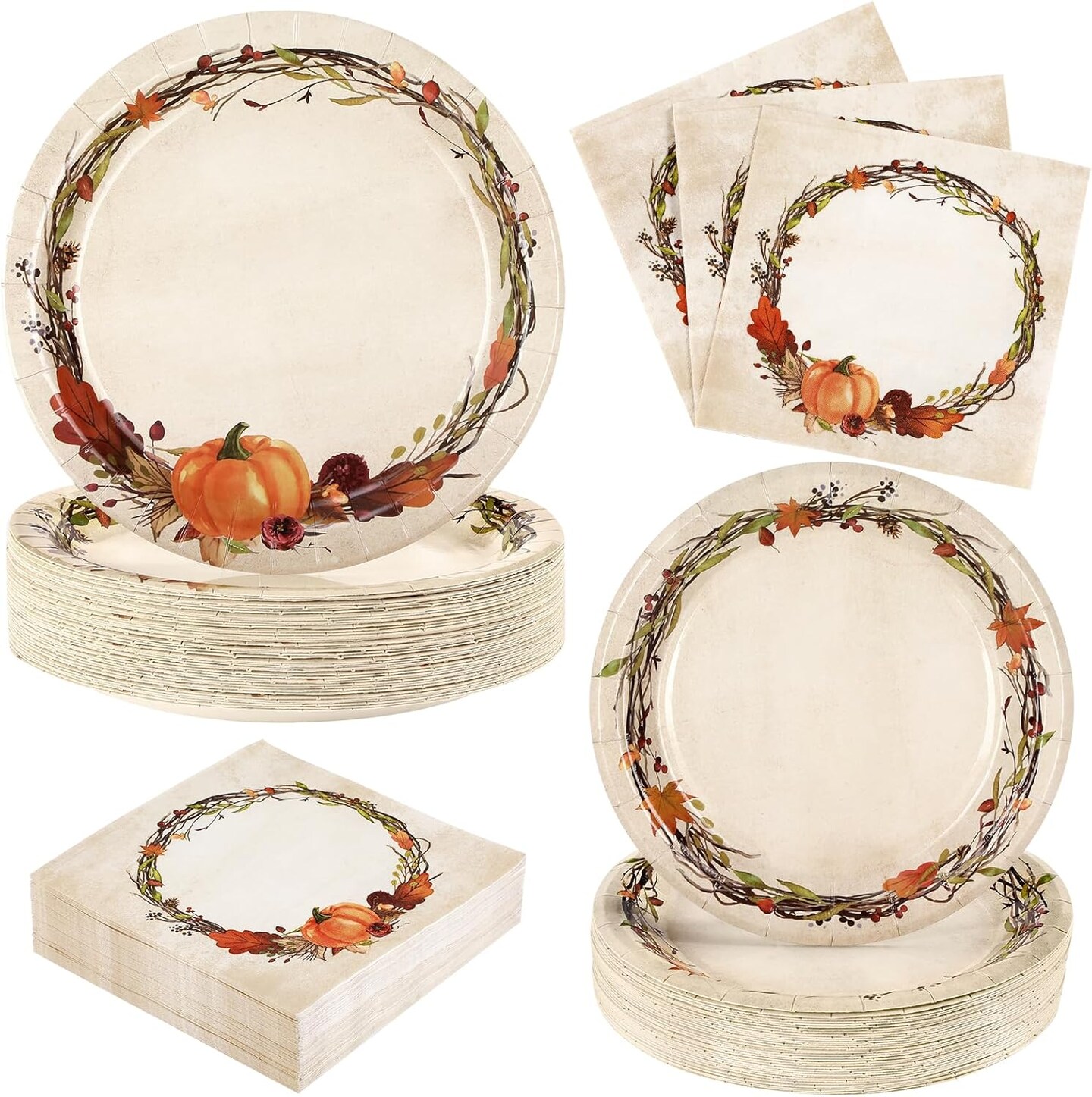 200PCS Thanksgiving Plates and Napkins (white, brown)