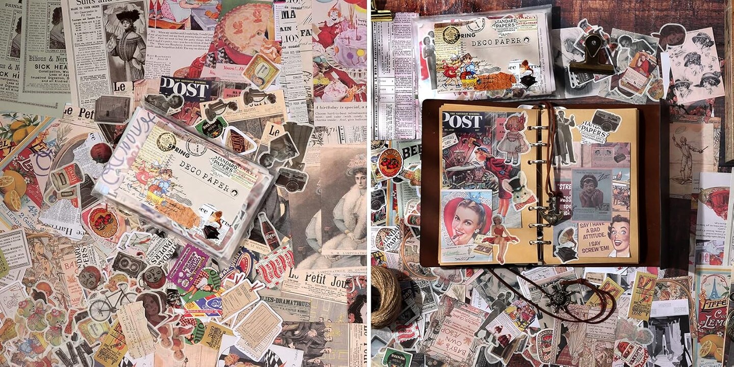 200pcs Vintage Junk Journal Scrapbook Stickers (Vintage) 4.7 x 6.7 Inches