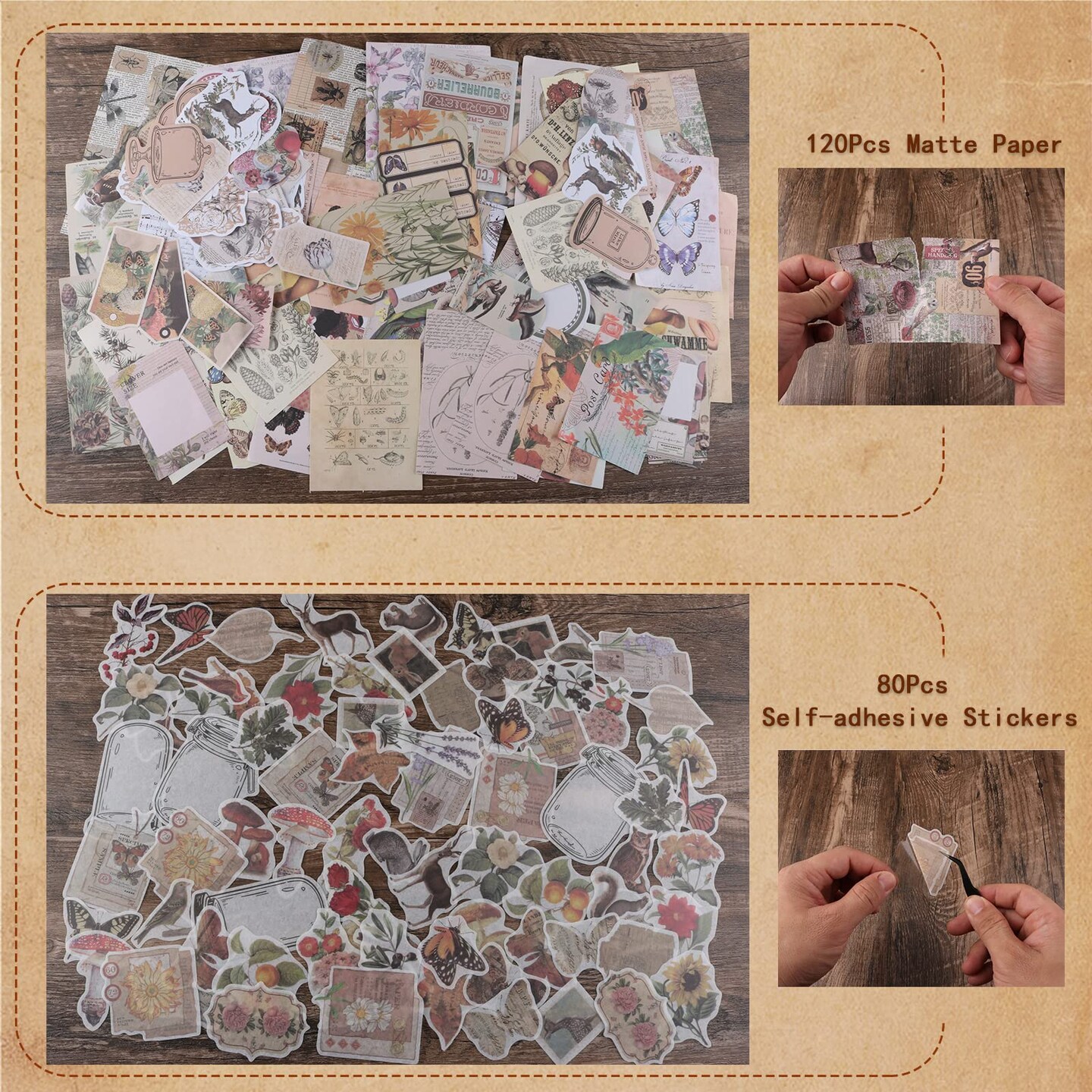 200Pcs Vintage Scrapbook Stickers, Aesthetic Junk Journal Stamping Supplies Kit, Scrapbooking Ephemera Washi Paper for Bullet Journaling Planners Diary Collage