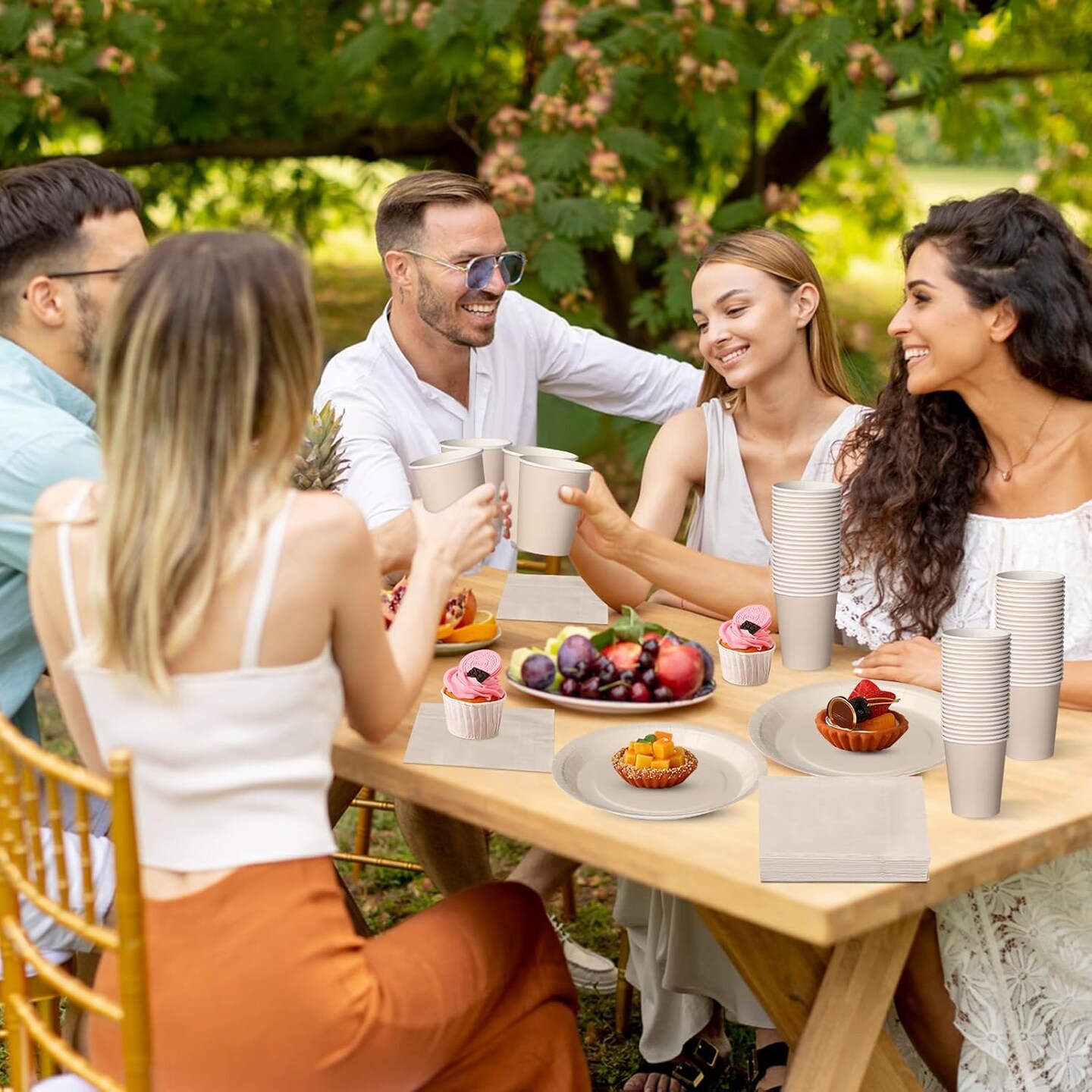 200-Piece Disposable Paper Plates, Cups, and Napkins Set – Perfect for Serving 50 Guests. Ivory Paper Dinnerware for Halloween, Birthdays, Weddings, Baby Showers, and Family Picnics.