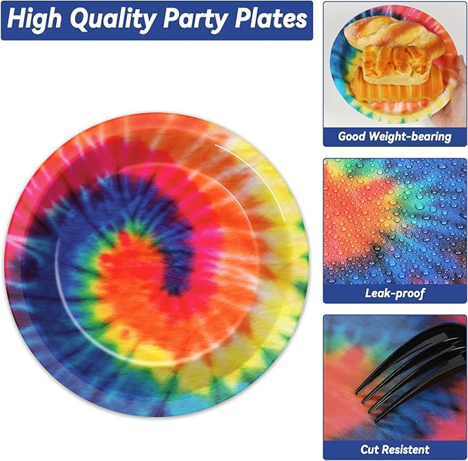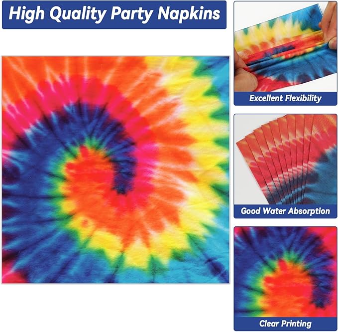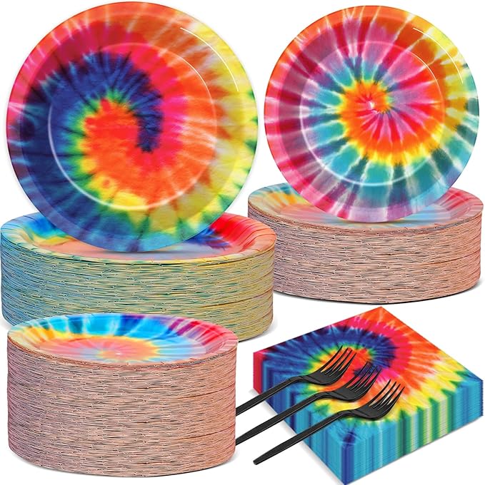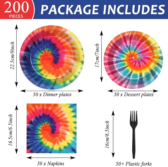 200-Piece Tie-Dye Party Tableware Set for 50 Guests – Includes Colorful Plates, Napkins, and Disposable Dinnerware. Perfect for Tie-Dye Themed Parties, Birthdays, Baby Showers, Graduations, and Fun Celebrations.