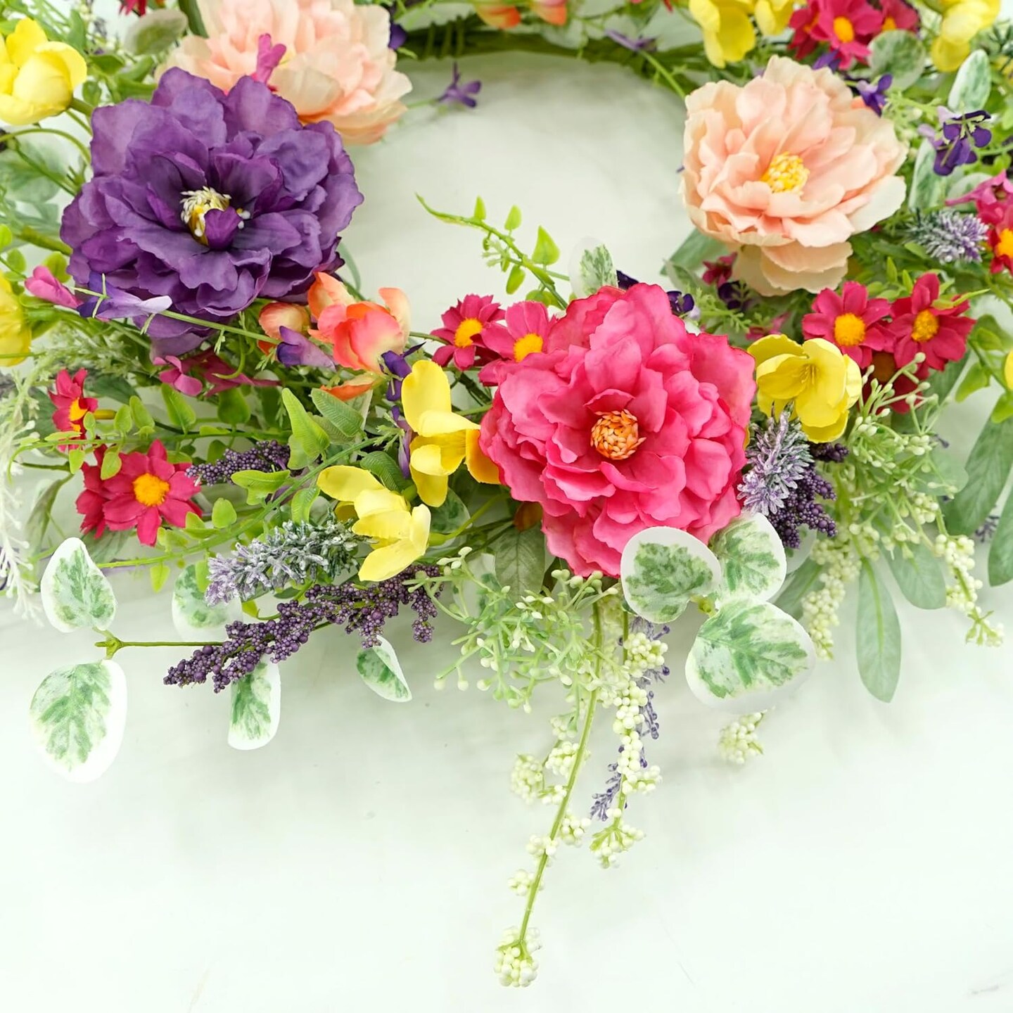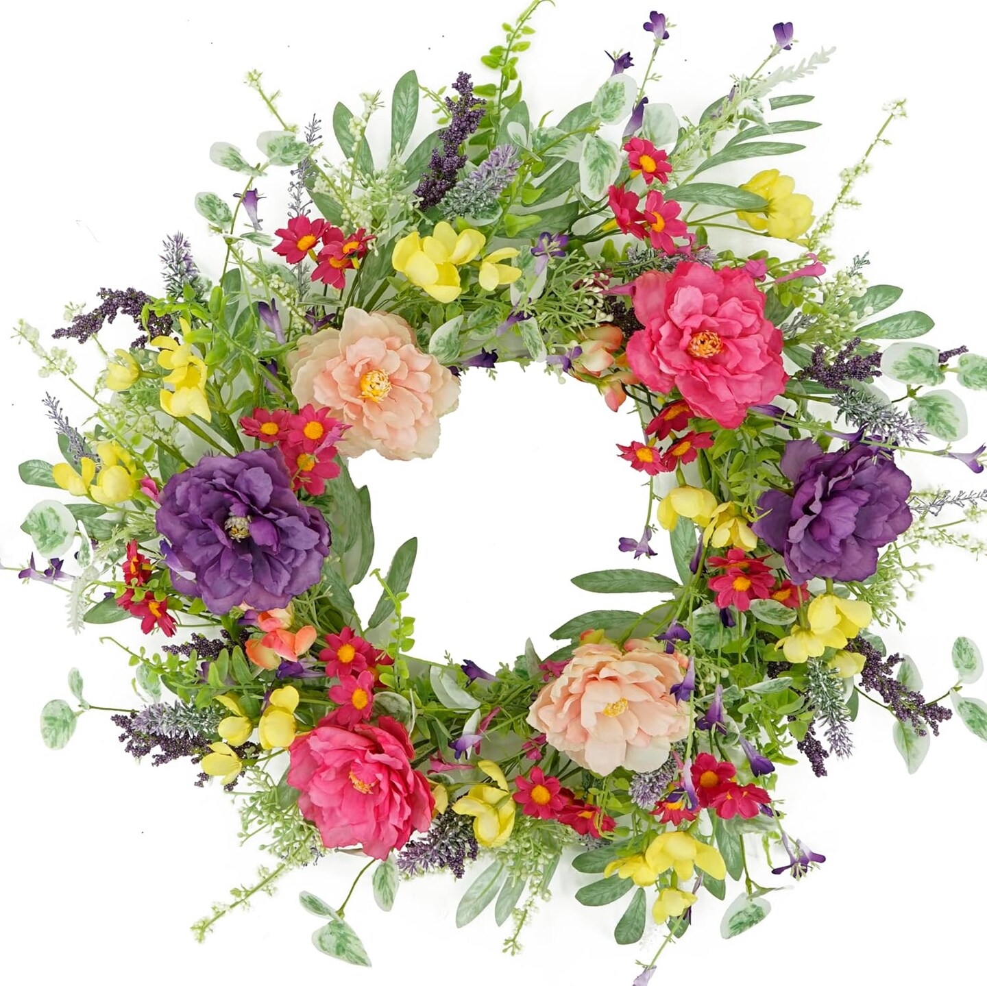 20–22" Artificial Peony Wreath with Olive, Eucalyptus, Daisy & Lavender – Spring & Summer Front Door, Wall, Porch, Wedding, and Farmhouse Decor