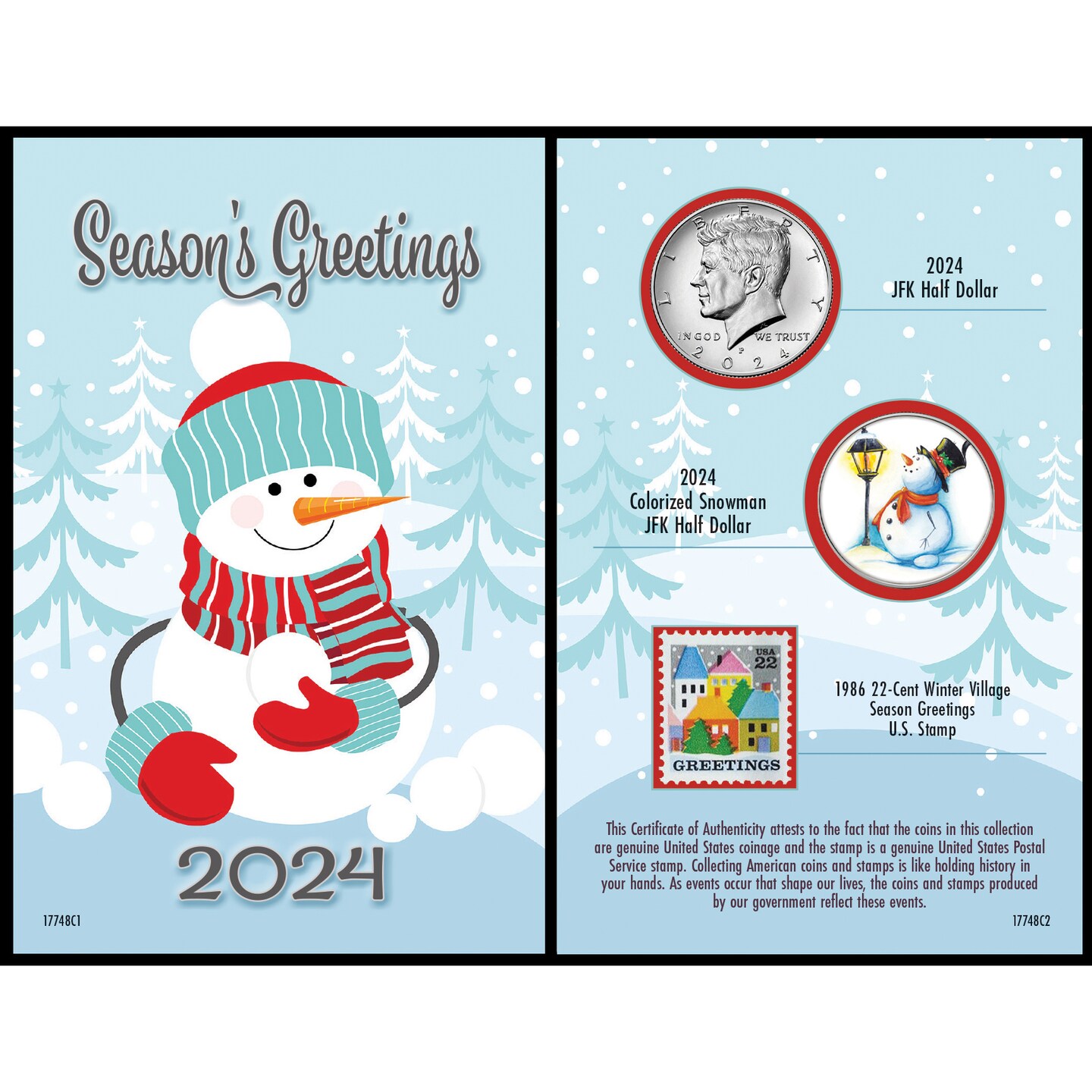 2024 Snowman Coin and Stamp Collectible Greeting Card