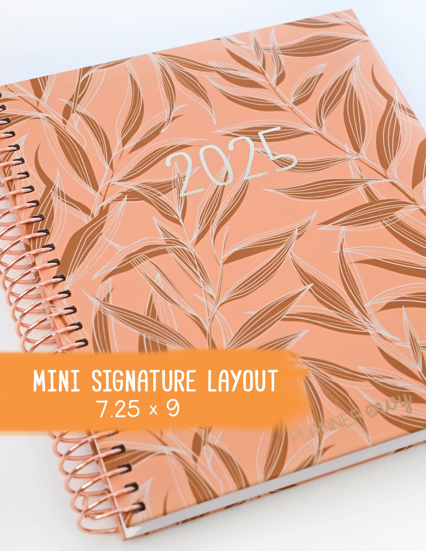 2025 Planner - Mini Signature Layout, Spiral Bound - "Golden Leaves" (#507)