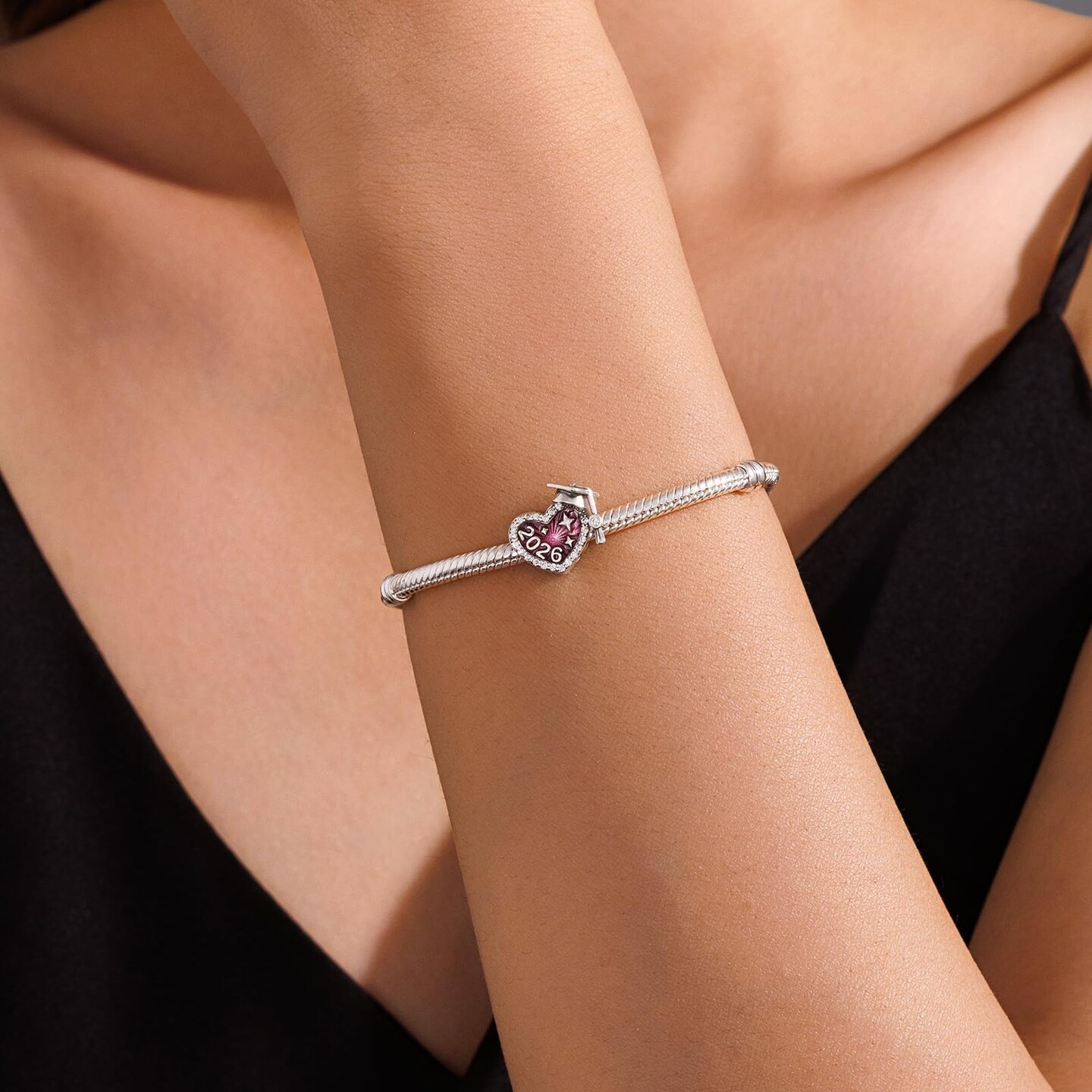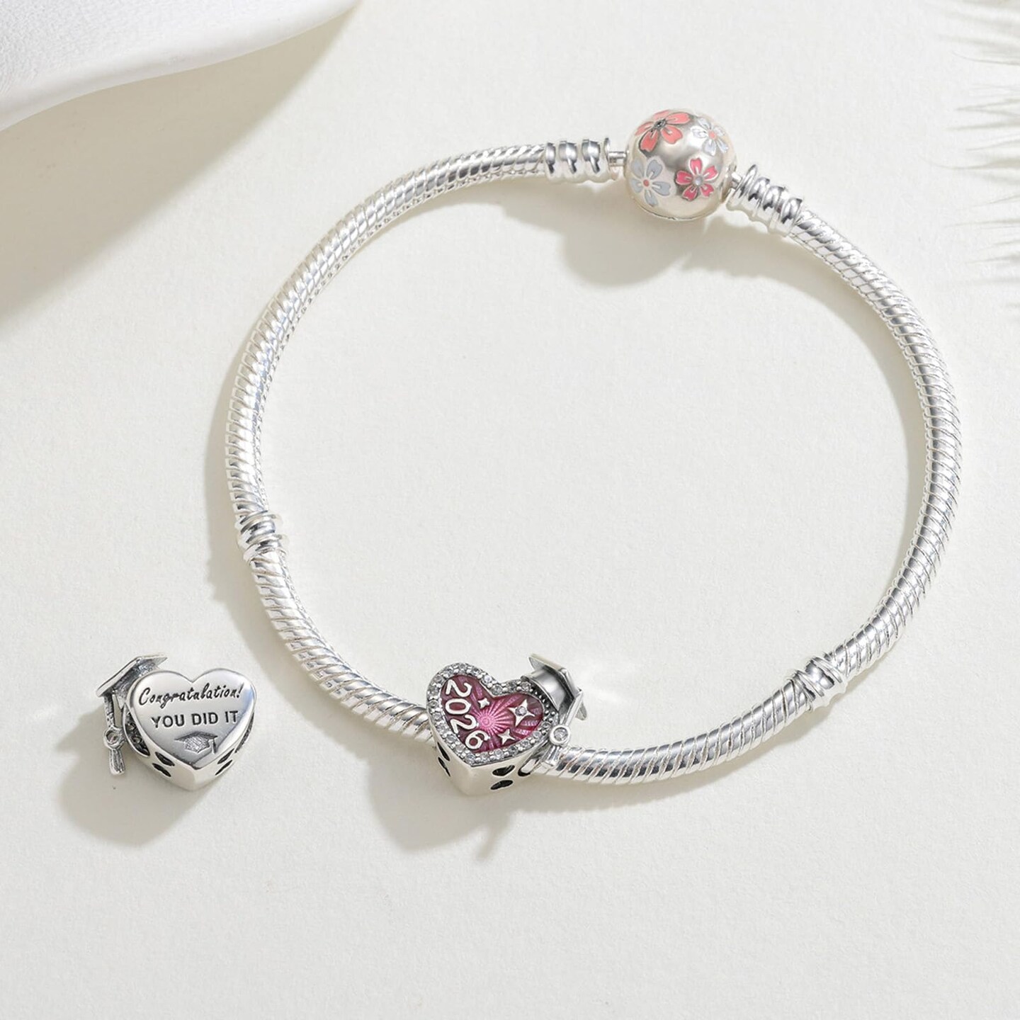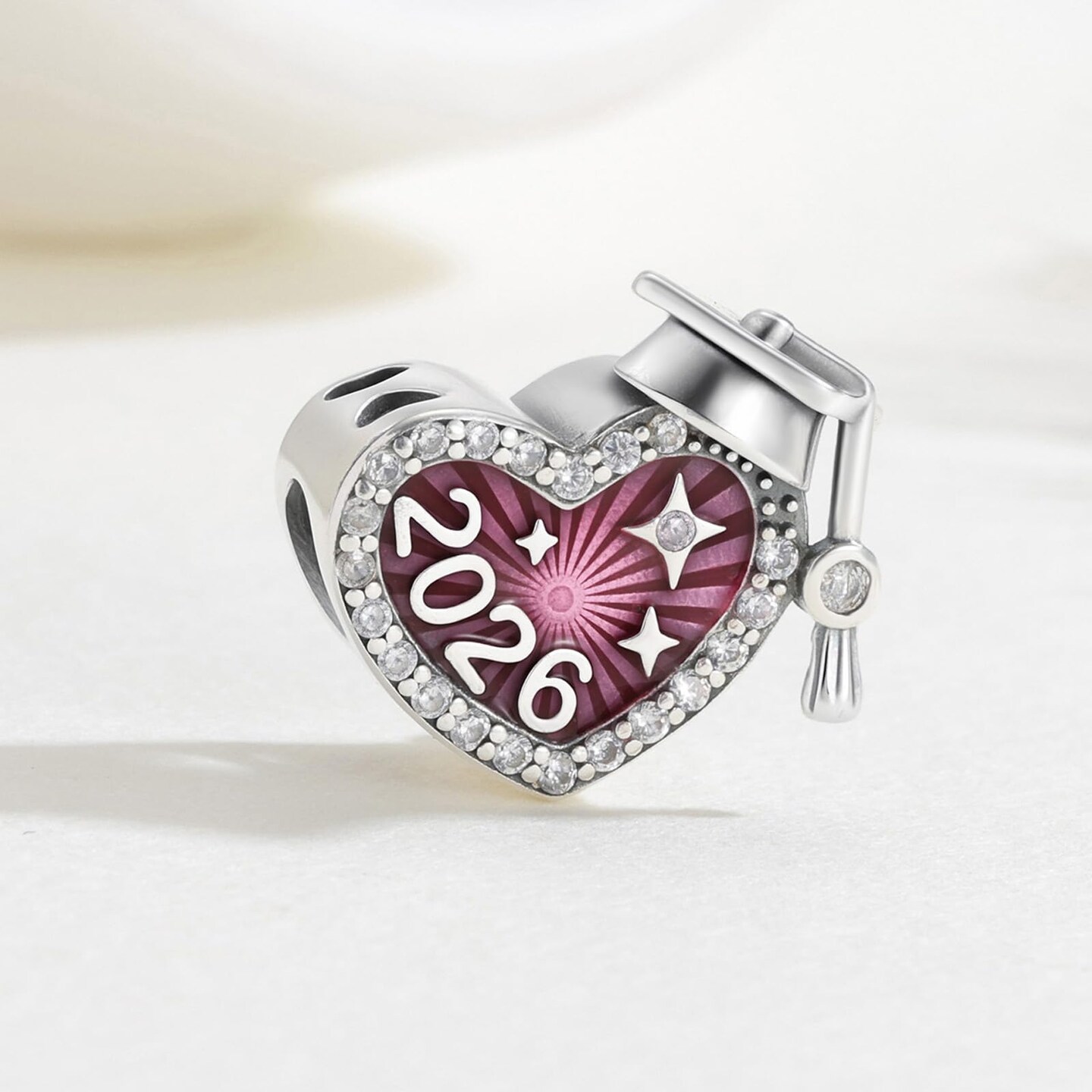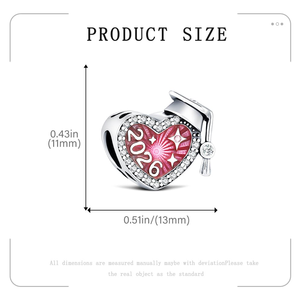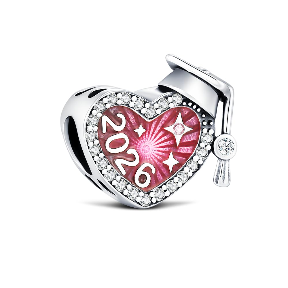2026 Graduation Cap Charms for Pandora Bracelets Necklace 925 Sterling Silver Bead for Daughter Granddaughter Graduation Pedant with 5A Cubic BBF Christmas Gift (Pink)