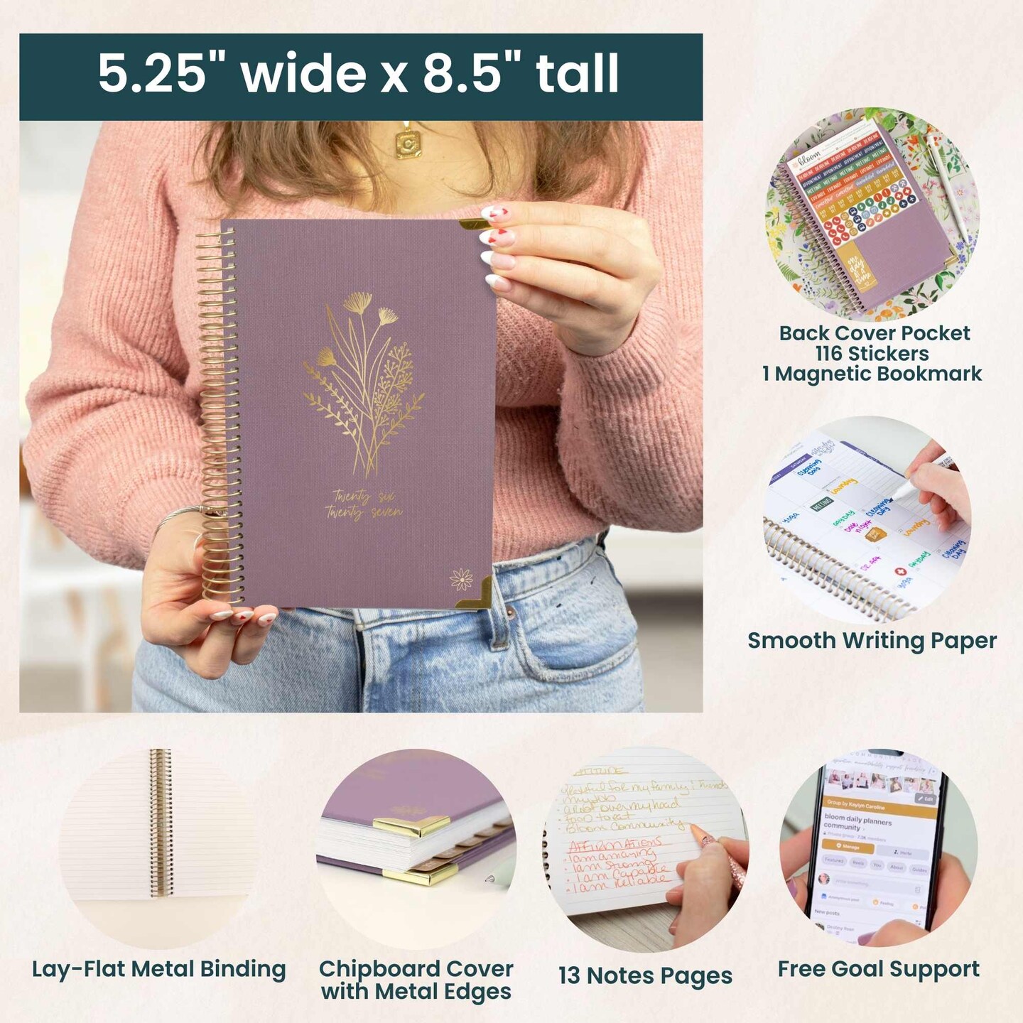 2026-27 Academic Hard Cover Planner, 5.5" x 8.25" - Purple Linen