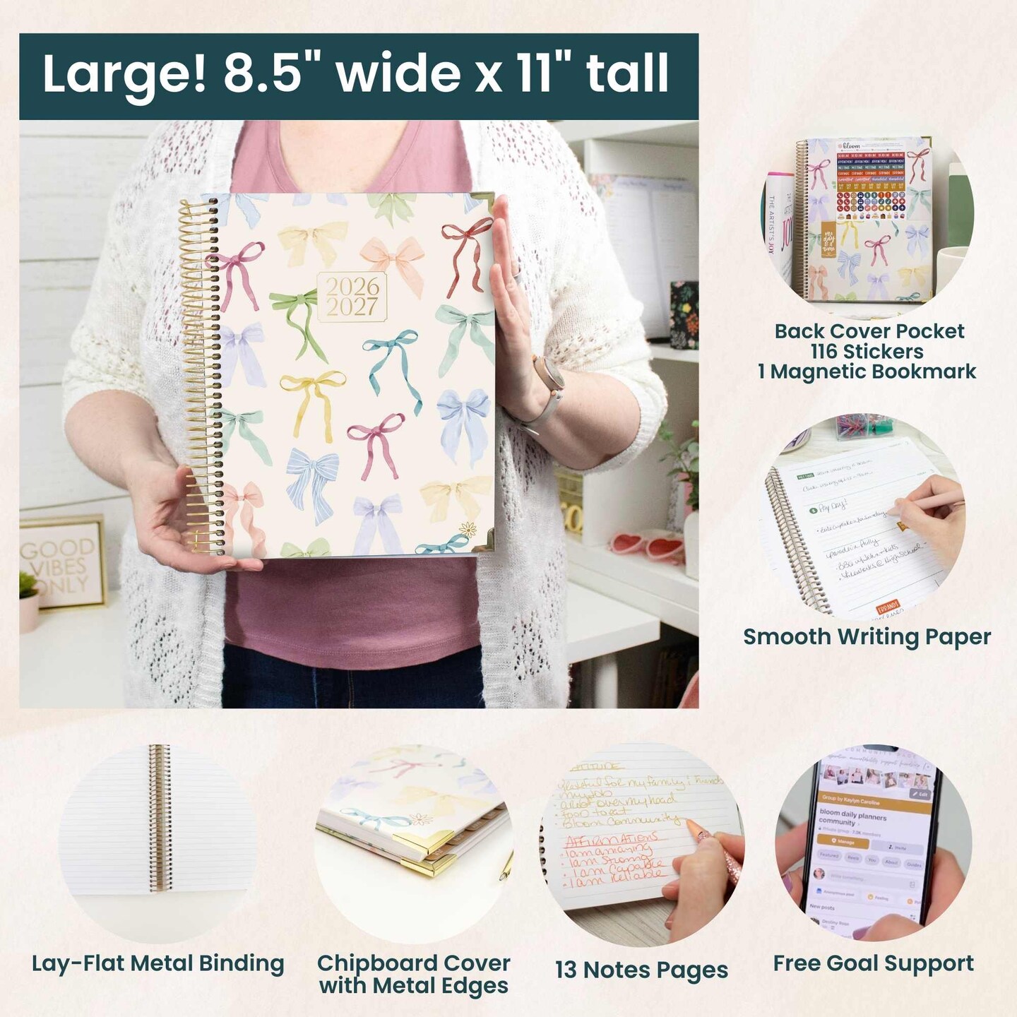 2026–27 Academic Hard Cover Planner, 8.5" x 11" - Bows