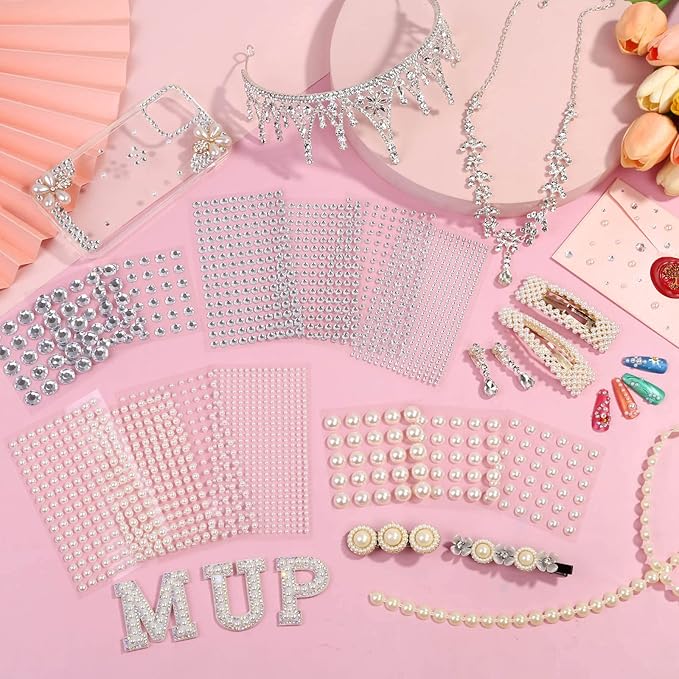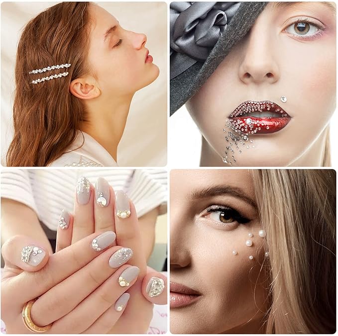 2032 Pieces Self-Adhesive Hair Gems and Pearls – Face Pearls and Jewels Stickers for Makeup, Crafts, Home Decor, Scrapbooking Embellishments (7 Sizes: 3mm, 4mm, 5mm, 6mm, 8mm, 10mm, 12mm)