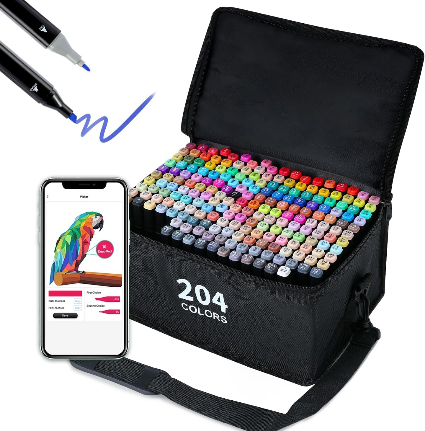 204 Colors Alcohol Markers with APP