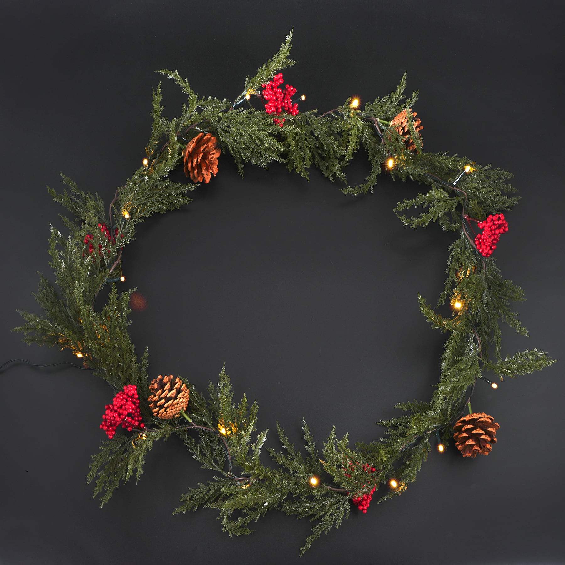20ct. Warm White LED Red Berry & Pinecone Garland String Lights by Ashland®