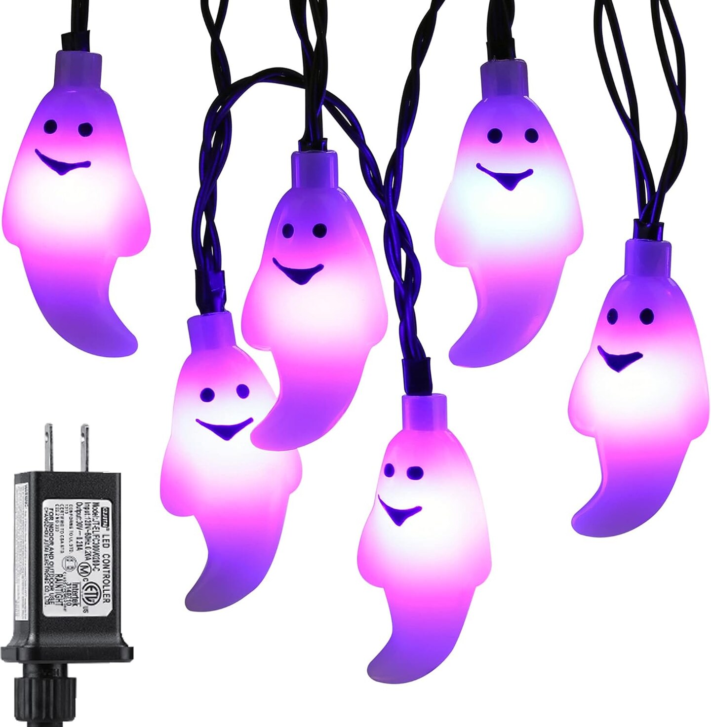20ft Purple Ghost String Light Plug in with Timer((Purple)