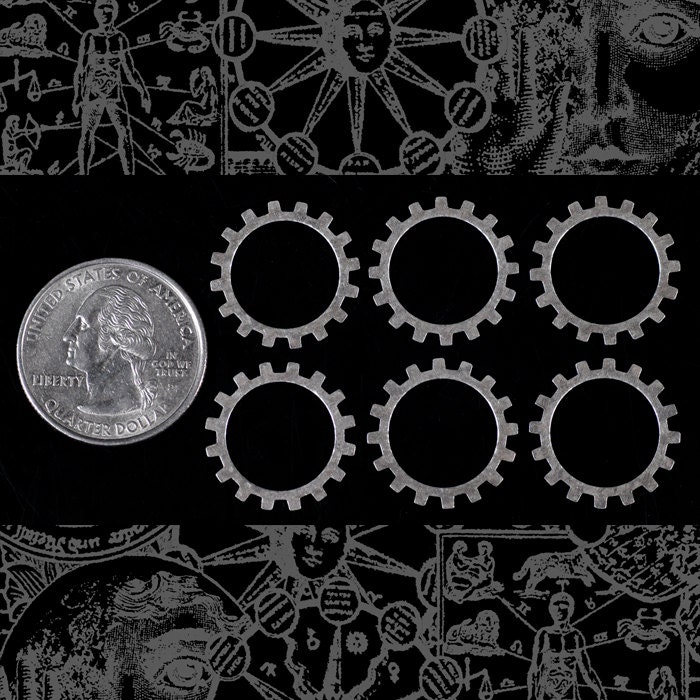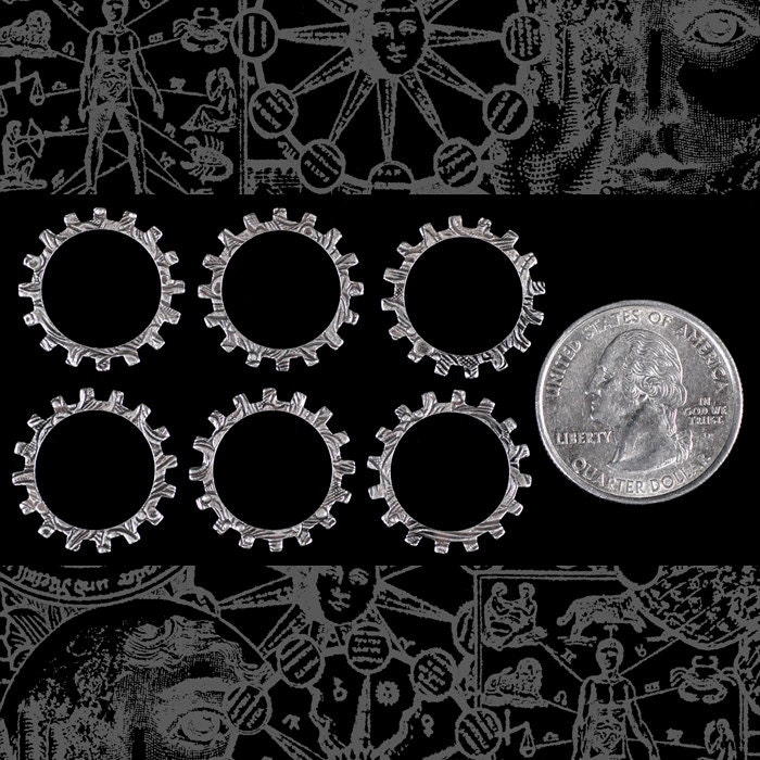 20mm Floral Patterned Etched Steampunk Antiqued Silver Plated Brass Open Wheels Gears Charms - Set of Six - S-PG06