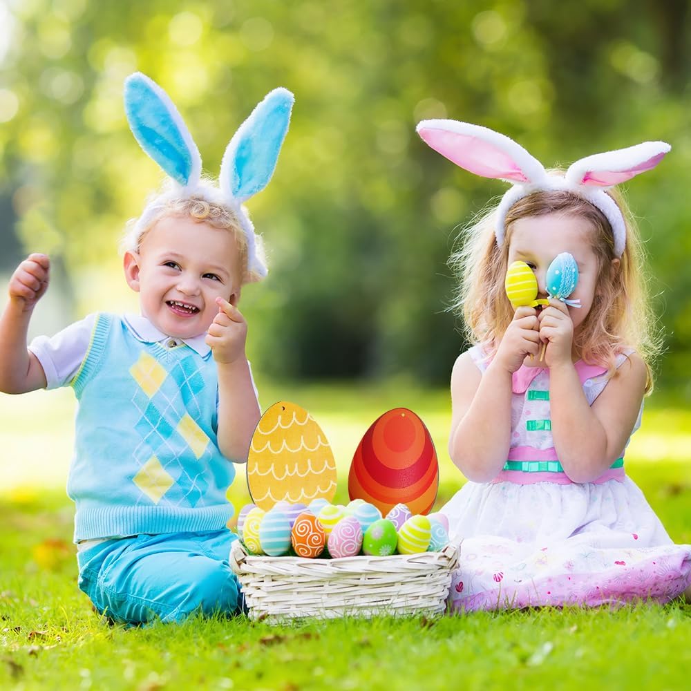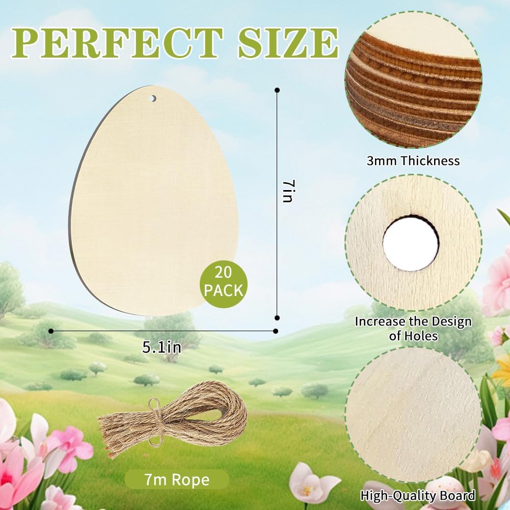 20-Pack 7-Inch Wooden Easter Egg Cutouts – Unfinished Wood Egg Slices, Blank DIY Craft Ornaments for Painting, Art Projects & Easter Décor