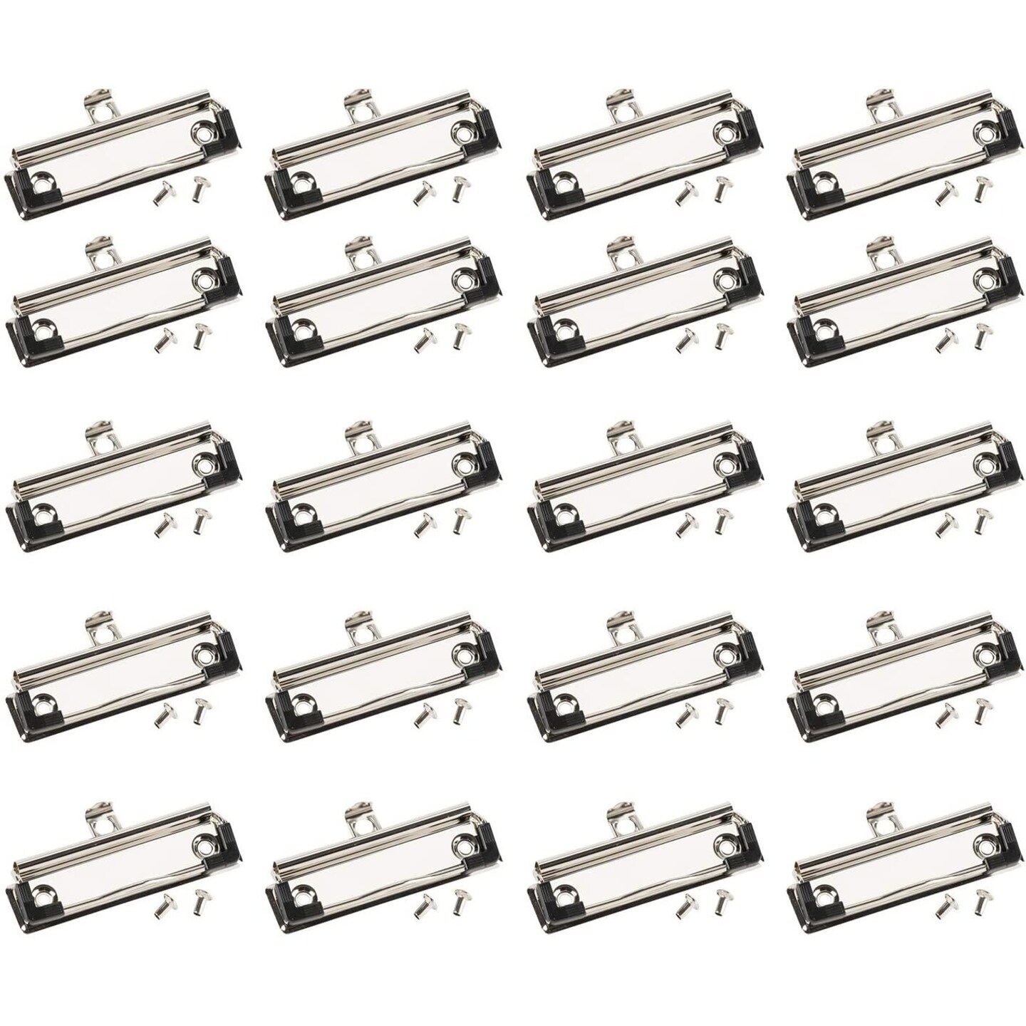 20-Pack Mountable Clipboard Clips with Screws - 4 inch Metal Clamp with Rubber Grip and Hanging Hole for Office, School, Classroom (Silver)