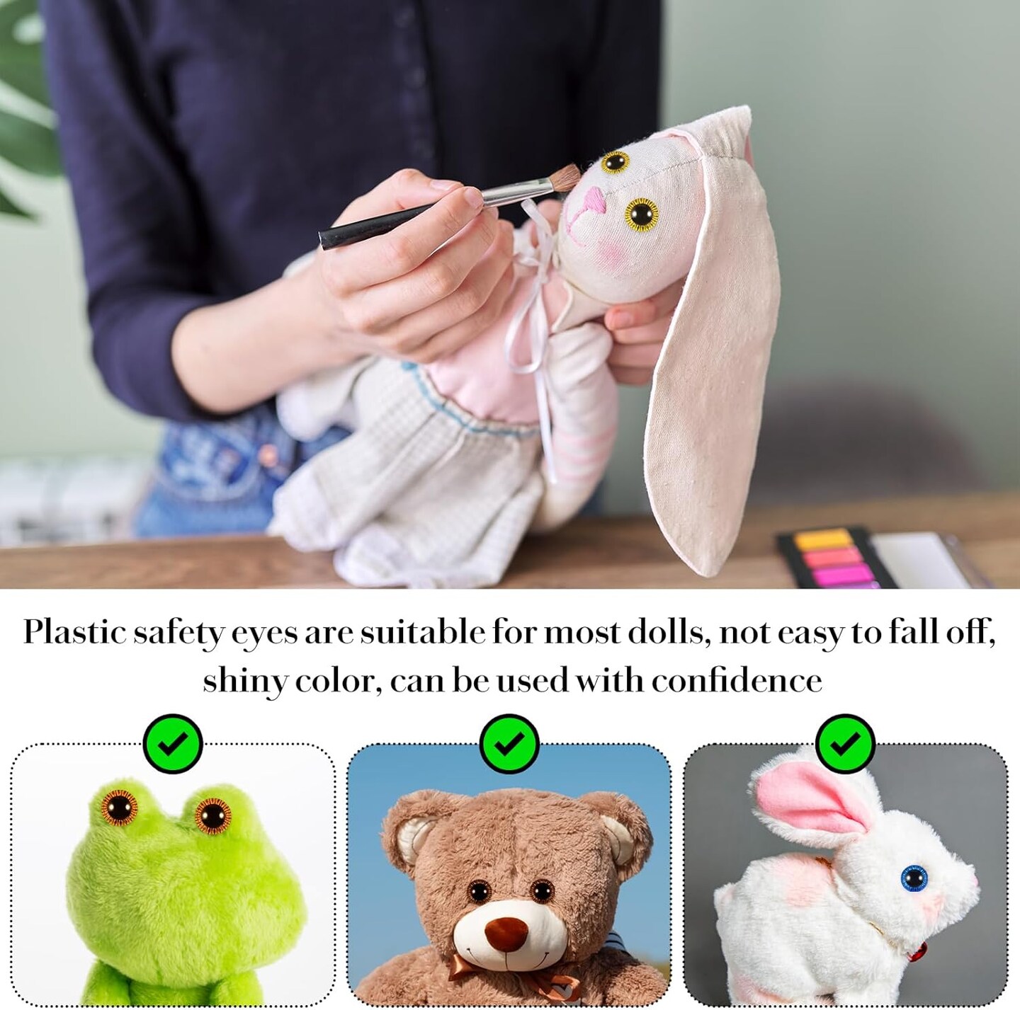 20PCS 15mm Colored Safety Eyes with Washers for Amigurumi, Crochet Dolls, and Plush Toys – Plastic Craft Eyes for DIY Bear and Doll Making