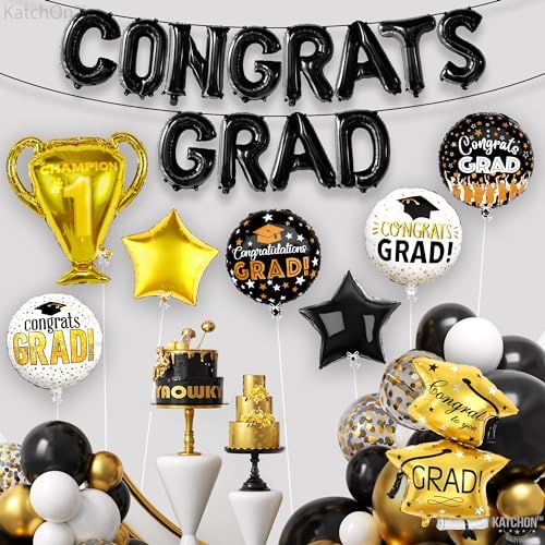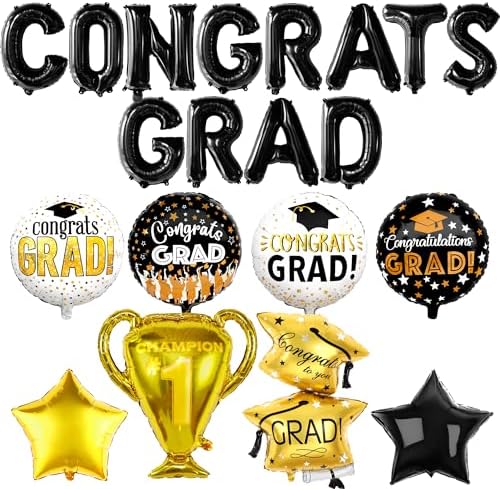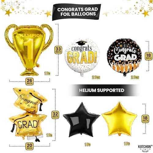 20Pcs Graduation Balloon Set – 33" Trophy, Grad Cap & Congrats Banner Balloons for 2025 Décor