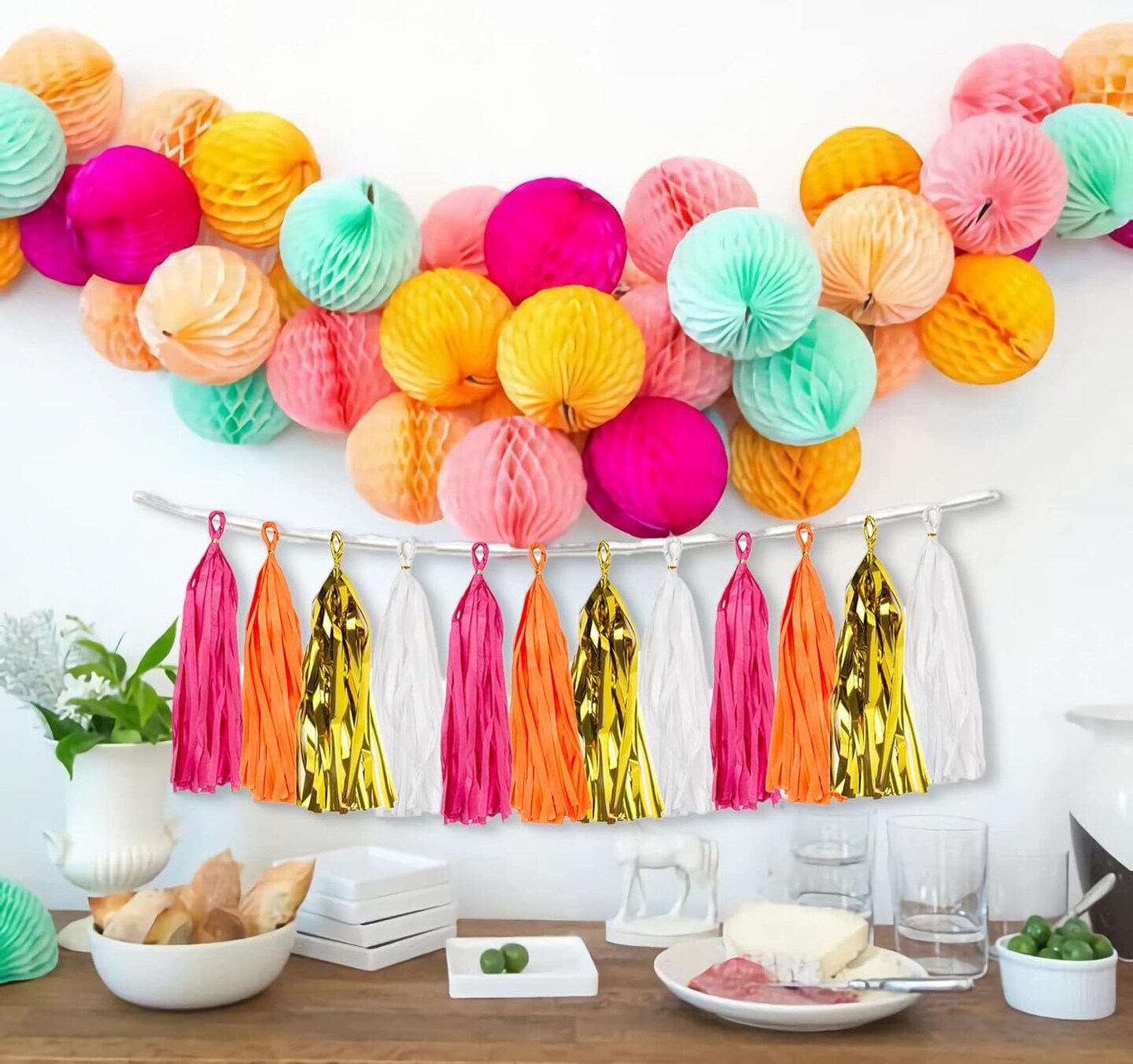 20PCS Hot Pink Orange DIY Tissue Tassel Banner Paper Party Garland Streamer for Graduation Summer Luau Flamingo Girl Baby Shower Pumpkin Birthday Party Wedding Nursery Classroom Décor