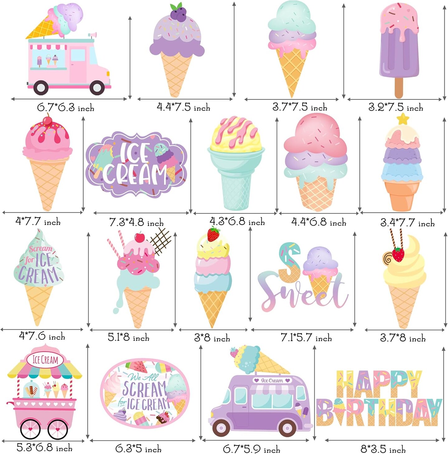 20PCS Ice Cream Party Hanging Swirls – Ice Cream Cone Birthday Decorations, Summer Theme Ceiling Streamers for Baby Shower, Kids Birthday & Ice Cream Party Supplies